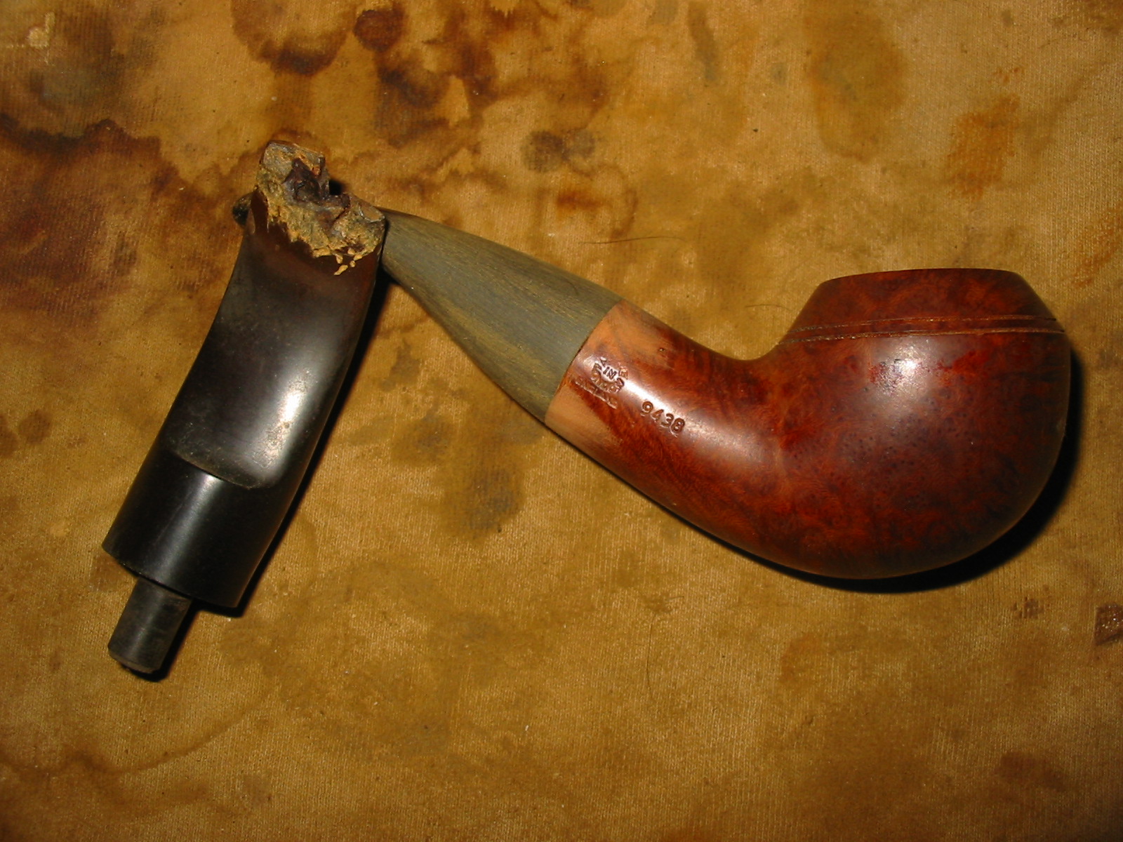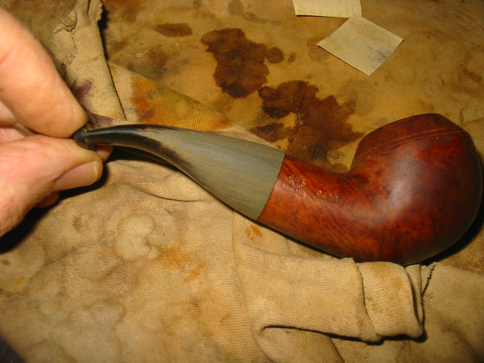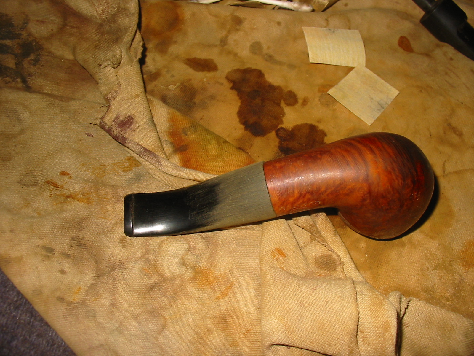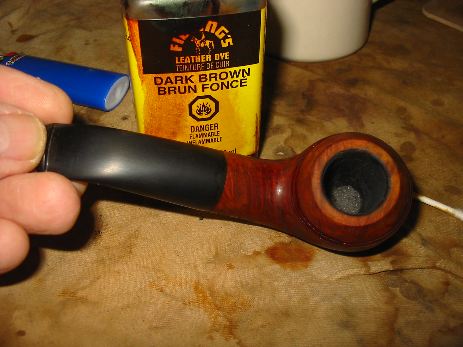 I wiped it down with Obsidian Oil, rubbed it down afterwards when it had dried and then buffed it lightly with White diamond. I reinserted it in the shank and then buffed the entire pipe with White Diamond and gave it multiple coats of carnauba to protect and give it a shine. I gave the bowl a second coat of pipe mud on the damage section to fill the shrinkage that had occurred as the pipe mud dried. It is drying and curing now but I look forward to firing up a bowl soon. I like the new look of the pipe and definitely like the taper stem. The shorter stem gives it a stubby look but it actually less than ¼ inch shorter than the saddle stem on my other 9438s.