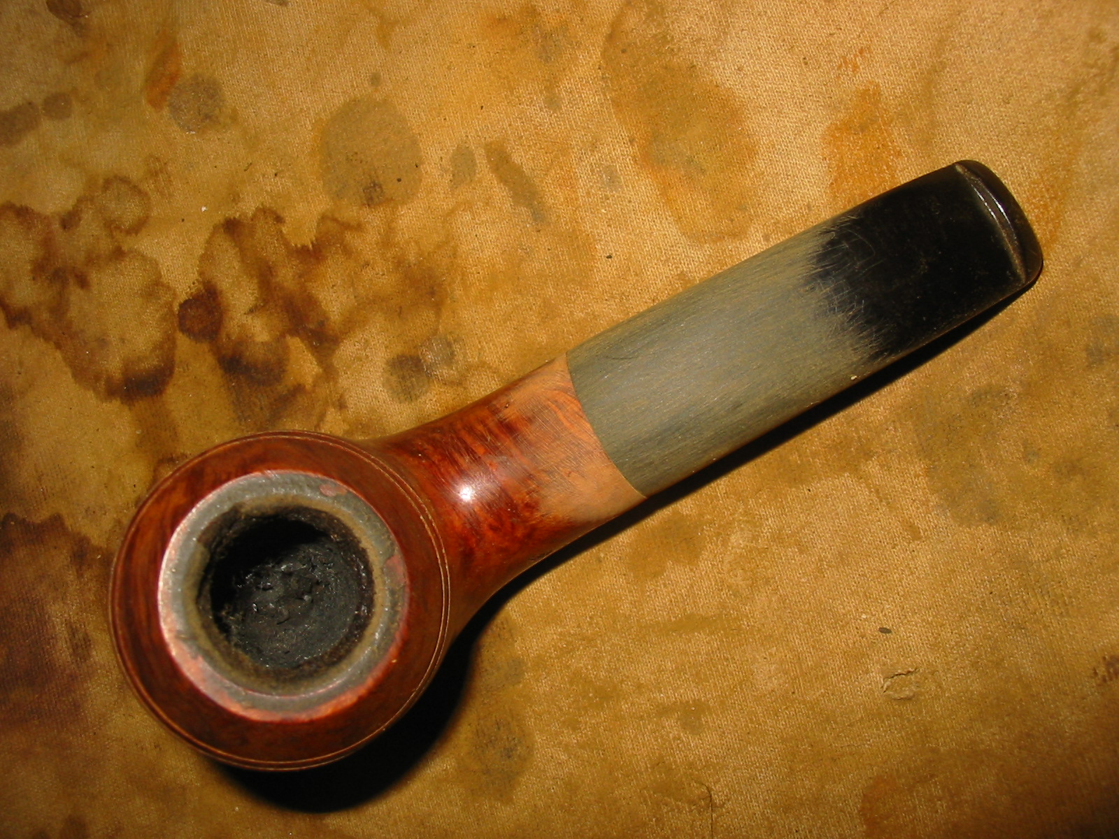 I reamed the bowl with the PipNet reamer until it was bare wood. In doing that I found that underneath the cake, on the right side about half way down the inside, there was some charring on the wall. It was the beginning of a burn through in that area. I cleaned up around the area with sandpaper and picked at it with the dental pick. In doing so I found that it was still solid and not too deeply damaged. It would require some damage control and protection so I coated it with some pipe mud. The airway entered the bowl a bit high as well so I raised the bottom of the bowl with the pipe mud at the same time. I may well give it a bowl coating to further protect it but will decide that in the future.