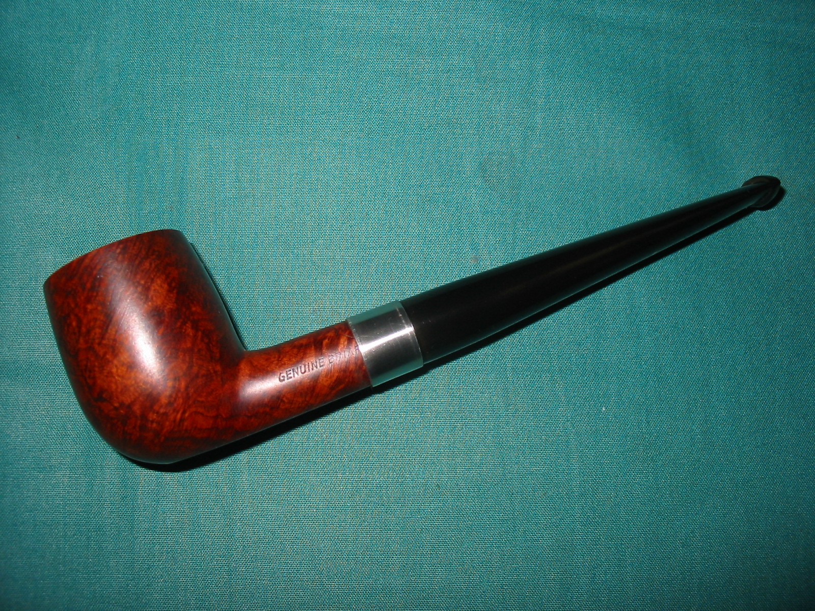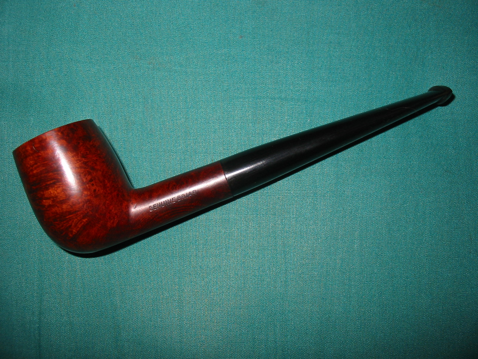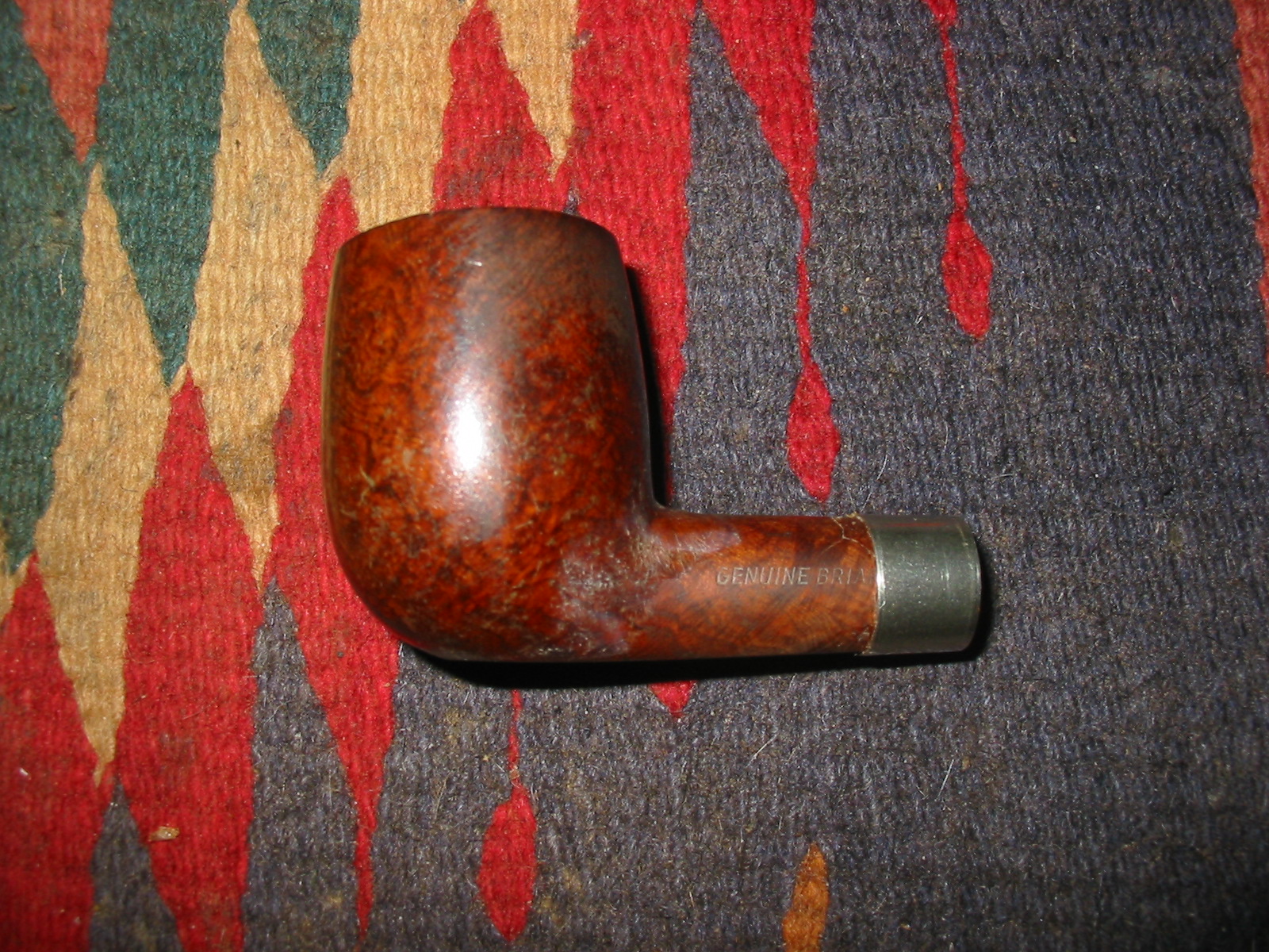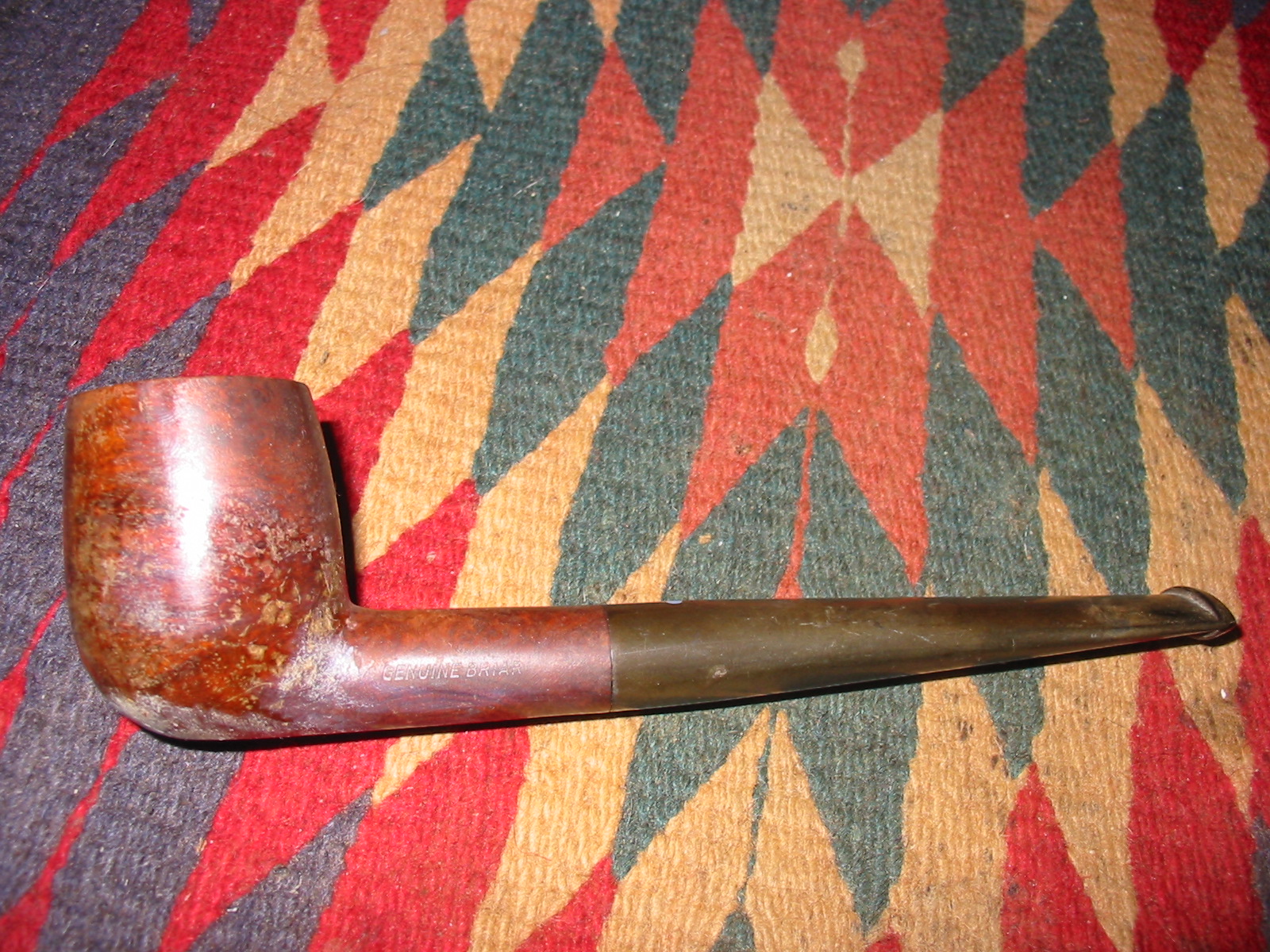 On October 26, 2013, I wrote about a pipe I found and my questioning whether it was a Sasieni Blue Dot billiard. I refurbished the billiard and wrote about it in this blog post https://rebornpipes.wordpress.com/2013/10/26/when-i-saw-it-i-thought-it-was-a-sasieni-one-dot-billiard/ . I was never satisfied with my conclusions regarding the manufacture of this particular pipe. Last weekend (December 28, 2013) I went pipe hunting again and stopped at the same location. There were two more of the blue dot pipes in his case. One of them had been smoked quite a lot and one of them was pretty clean. The one had a cracked shank and the other was clean. The clean one had a stinger apparatus in it while neither the earlier find or the other one this time had one present. The interesting thing to me was that on both of these pipes there was a single line stamped on the bottom of the shank. On the relatively clean pipe the stamping was gold filled and read ATLAS POWDER CO. On the other pipe it had the same stamping though the gold was long gone. I checked the previous pipe and sure enough the same stamping, though fainter was present. Suddenly I had in my possession a trio of billiards. All had the single blue dot on the stem, all were stamped Genuine Briar. All had the same English style tapered stem. All were nice pieces of briar with no fills or flaws. All were stamped ATLAS POWDER CO.