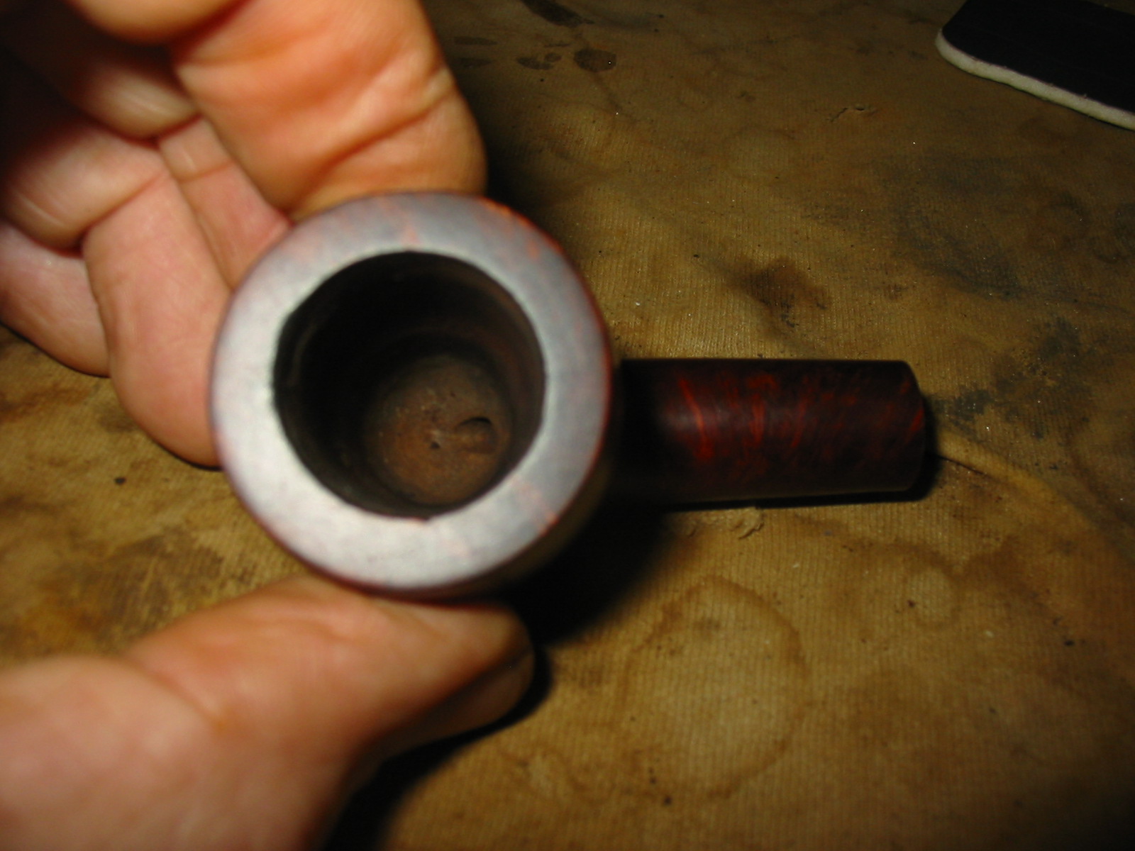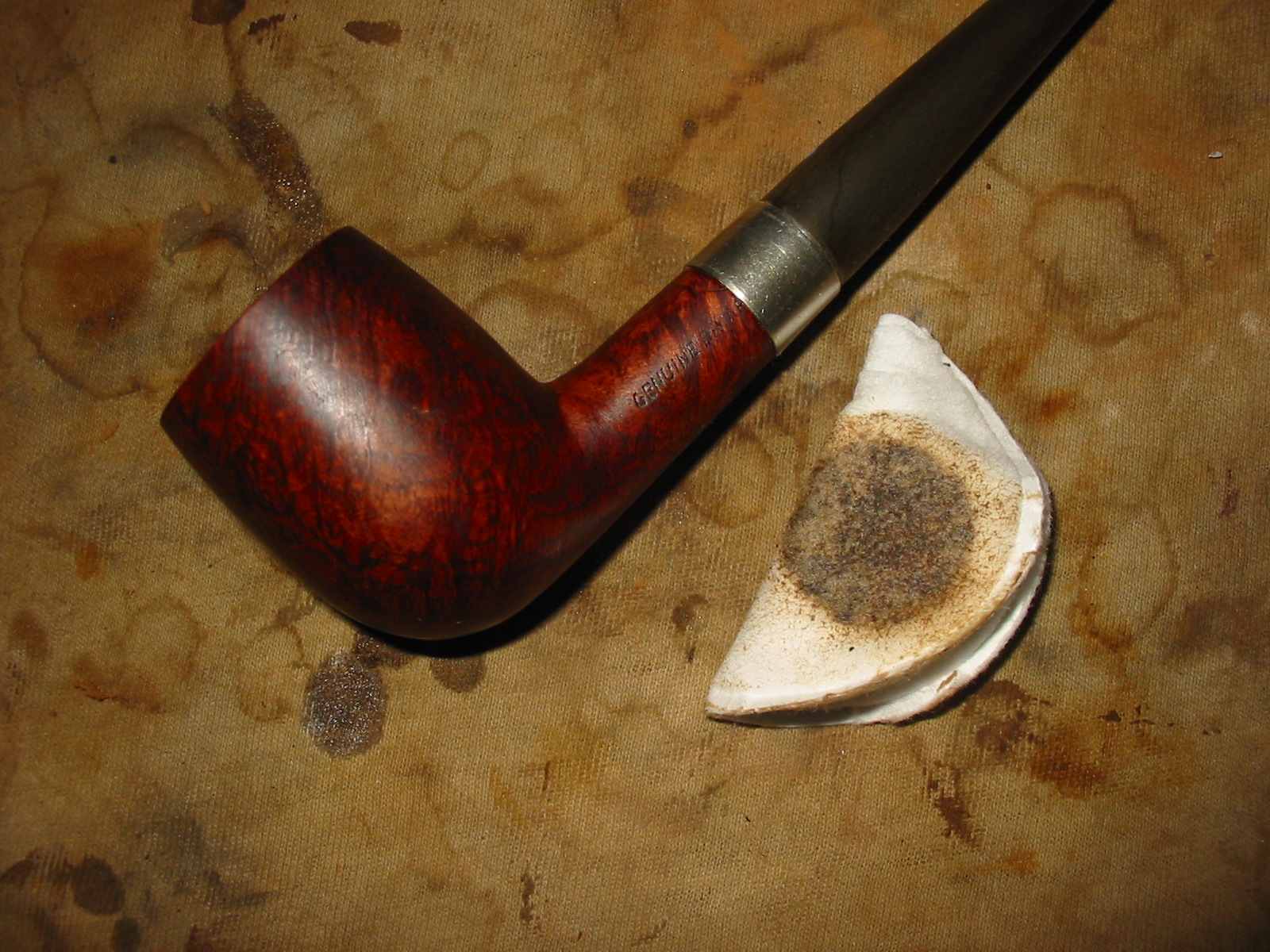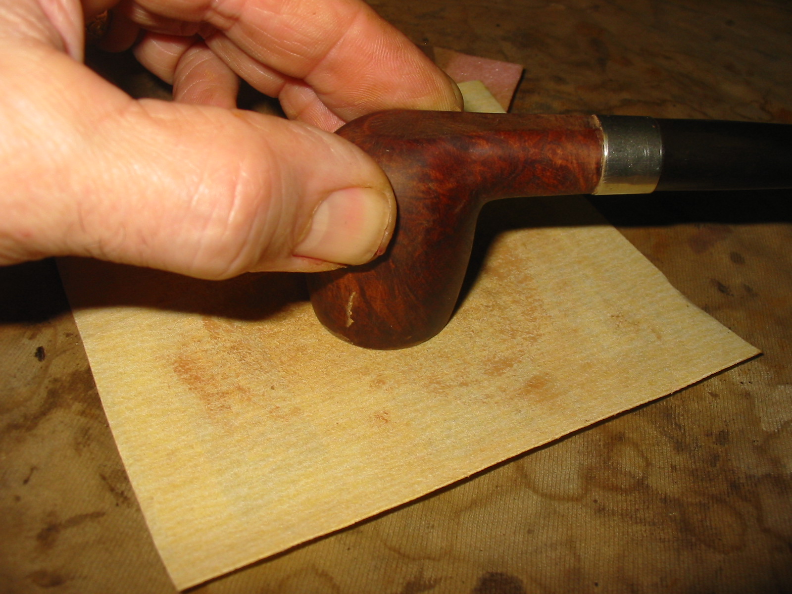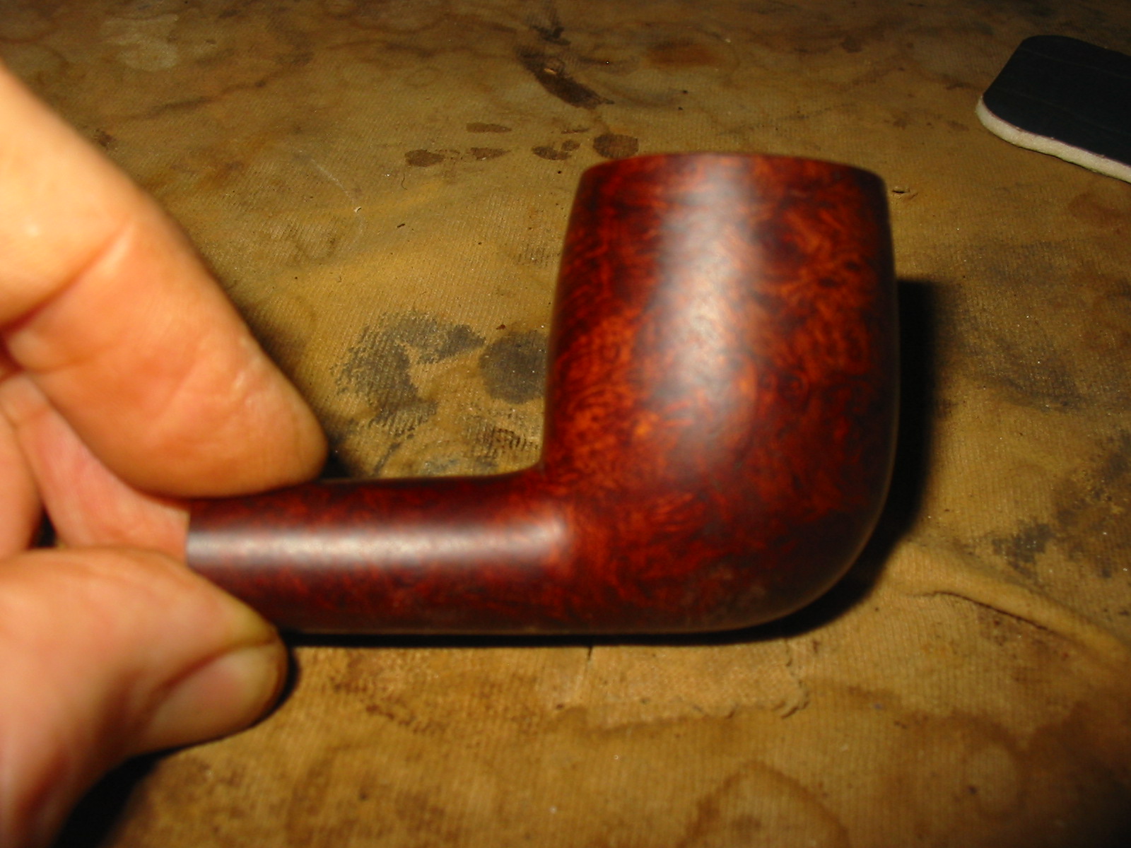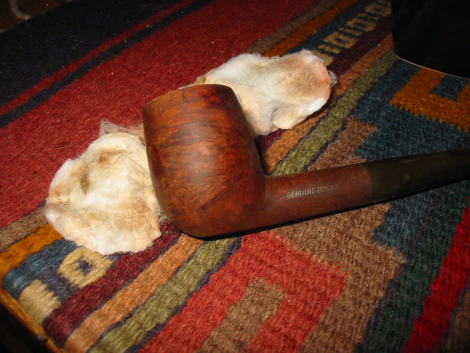 I wiped the bowl down with acetone on a cotton pad to remove the finish that remained on the pipe. There was a light varnish coat that came off easily with the acetone. Underneath was some very nice grain and no fills or fissures.