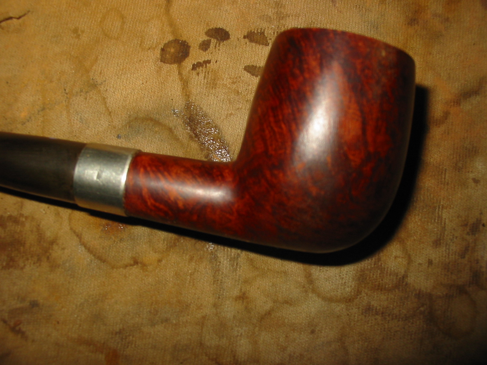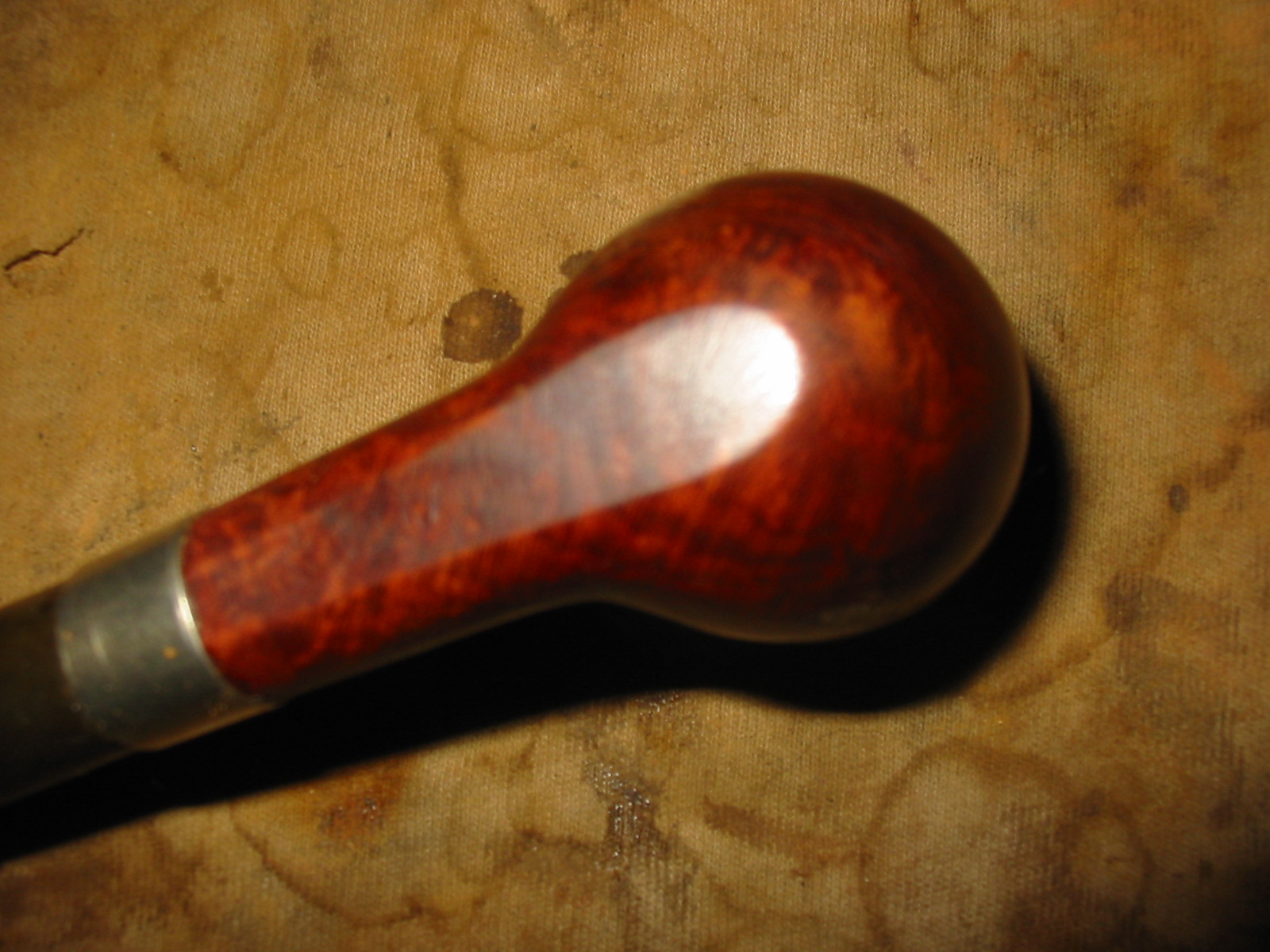 The first of the two pipes was finished. I buffed the entirety with White Diamond and then gave it multiple coats of carnauba wax. I buffed the newly waxed pipe with a soft, clean flannel buff to give it a shine and set it aside while I worked on the second pipe. The next four photos show the finished pipe.