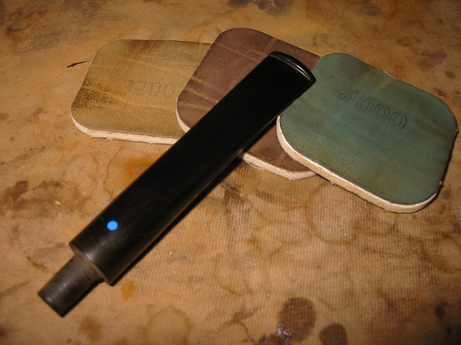 I used the same regimen on the stem as noted above to polish the oxidation away. I have found that the combination of wet and dry sanding with micromesh sanding pads works well for me and gives the stem a deep shine. When I finished sanding I buffed it with White Diamond and rubbed it down with Obsidian Oil. I hand buffed the stem and set it aside while I worked on the bowl.