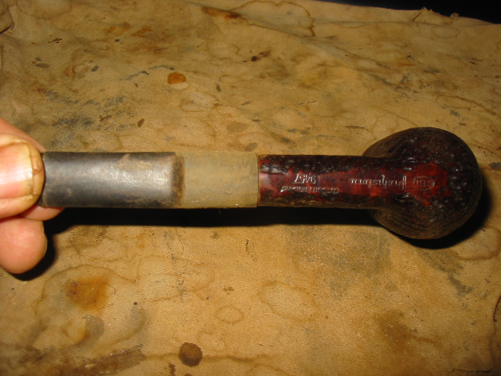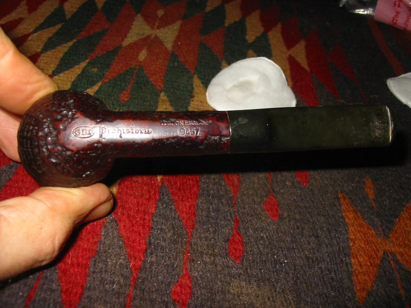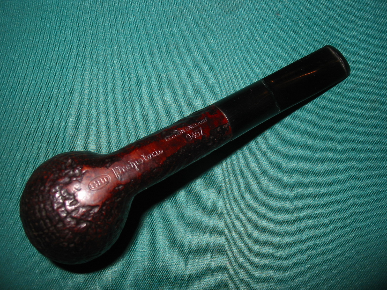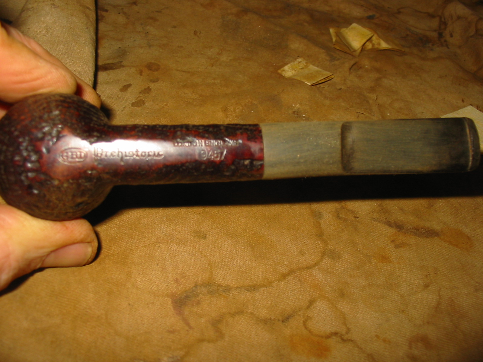 This is the fifth of the six pipes that I picked up recently. It is a GBD Prehistoric that has a great sandblast. The stamping on the pipe is on the underside of the shank and reads as follows: GBD in an oval followed by Prehistoric in Germanic script. Next to that is London England over 9457. While it looked like it was originally a billiard, I have learned that initial looks can be deceiving. I checked out the shape number on the web at http://www.perardua.net/pipes/GBDshape.html and found out that the shape was not a billiard at all but that it is supposed to be a Lovat.