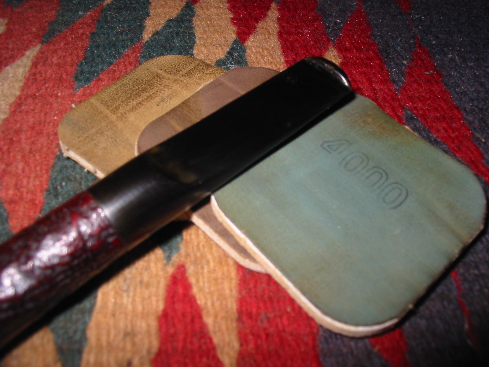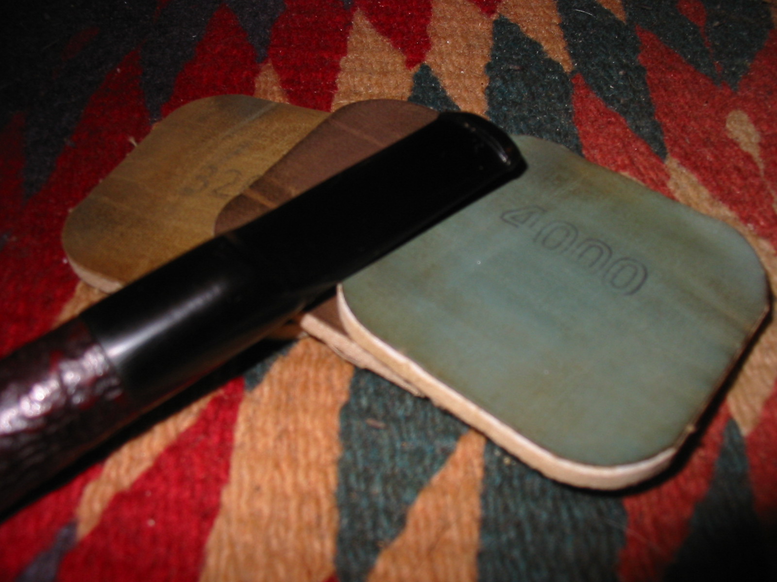 Next is a photo of the bite proof twin bore stem. It is a bit different from others I have seen in that it seems to have a white bar inserted between the two airholes in the button. It give the end view a striped appearance.