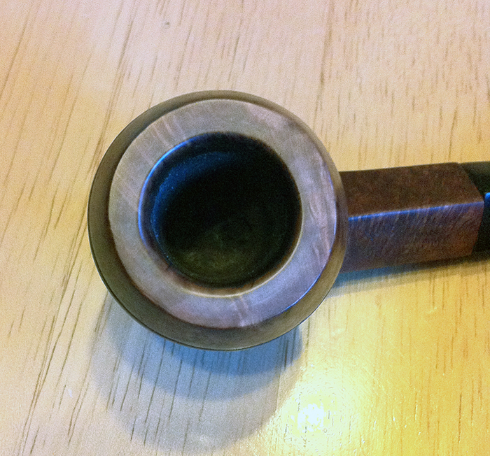In the letter Mark included with the pipes he noted that there were small cracks in the exterior bottom of the bowl. I examined it with a light and saw that the three small cracks radiated from the three divots on the bottom of the bowl. These were flaws in the briar or dents, I am not sure which. The cracks radiated from the three points to a centre point where they met. They did not extend beyond the divots. Examining the inside of the bowl the bottom was not overly deep and there did not appear to be any cracks internally.