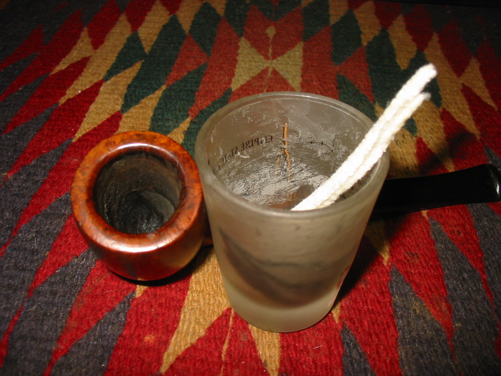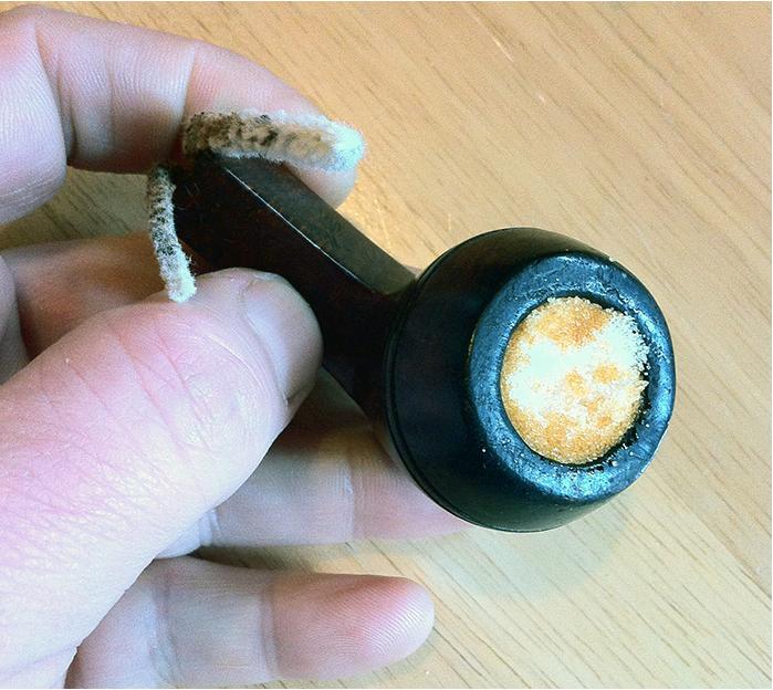 I mixed a batch of pipe mud – cigar ash and water to make a paste. To ensure that the bottom was not damaged I picked it clean with the dental pick and then painted it with the pipe mud. Though there was no sign of damage on the inside of the bowl, the pipe mud was a precautionary measure for peace of mind.