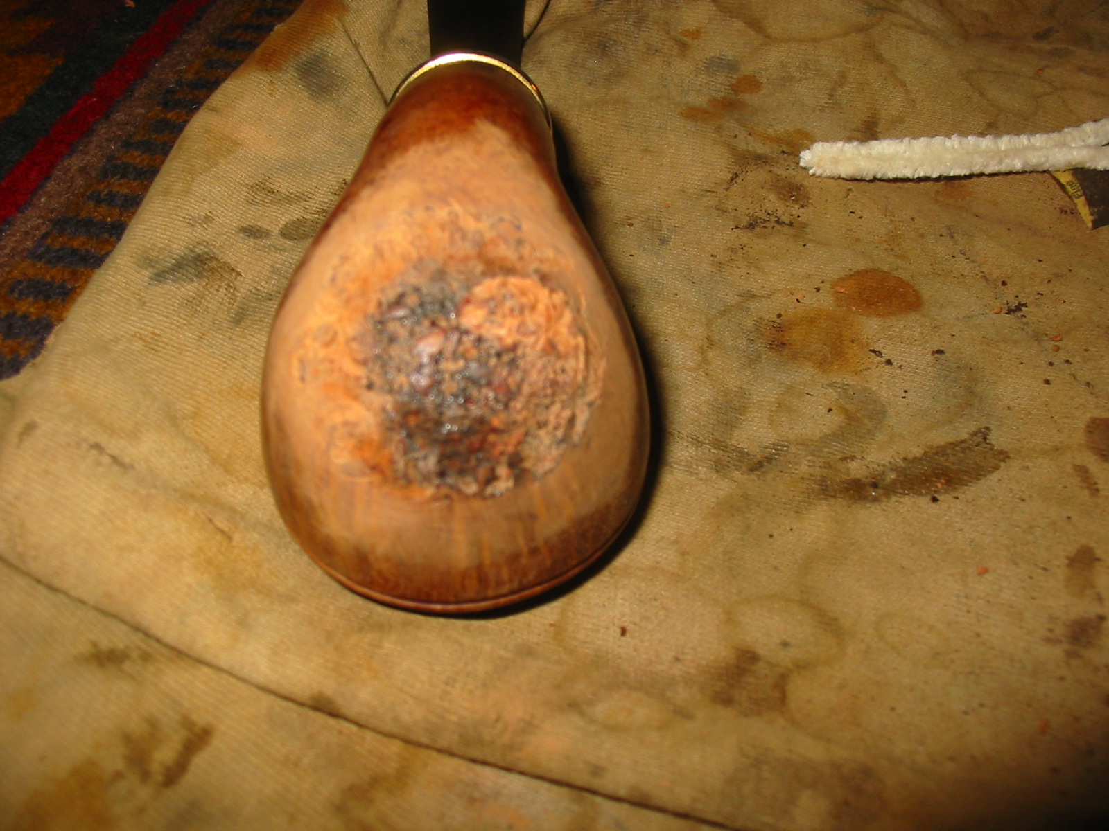 UPDATE: I applied the pipe mud to the bowl last evening. It was a great day to fire up a Cohiba Habana and save the ash to mix. I use a shot glass to collect the ash and add the water with an ear syringe. Once the mix is the right consistency I apply it with a folded pipe cleaner. I apply it and let it set and then follow up with a second or third coat as necessary.