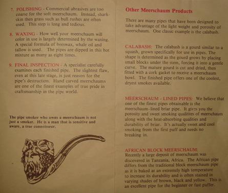 On the other side of the sheet are a few notes “…intended to assist you to obtain the maximum pleasure and long service from your new pipe and are drawn from the personal pipe smoking experience and accumulated trade knowledge of successive generations of Guild Tradesmen.” With those words the page goes on to describe how to Break in a new pipe, Special care for block meerschaum and meerschaum lined pipes, Common Faults in Smoking and finally the Conditions of Guarantee.