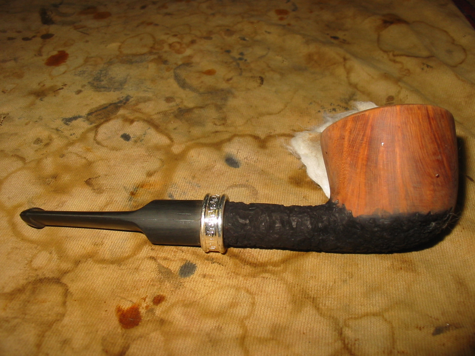 After shopping on line and major on-line B&Ms I quickly realized that this new found love could get expensive, very quickly. So I turned to eBay, and starting amassing a pretty good size collection, but they were mostly oddball pipes that just caught my fancy and really were not enjoyable smokes. I started looking at higher end pipes on eBay and realized that again, this was going to get expensive. But I had this fascination with collecting pipes, and lacked the resources or desire to spend huge amounts of money. I had been cruising the net and stumbled upon Reborn Pipes and reading about Steve’s work breathing new life into old pipes. So I dove in and bought the few materials that I would need and started using my eBay acquisitions as practice material. In the process I found a new love, pipe restoration and rustification. It has been a fun journey since, and through the help of friends from forums I acquired more and more briar to work on, both mine and theirs, and just kept trying new techniques. There were highs and lows, and thankfully the lows were on my own pipes, and the highs were from seeing the reaction from pipe owners to my work on their pipes.
