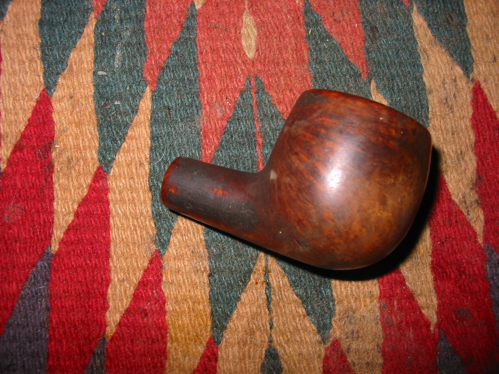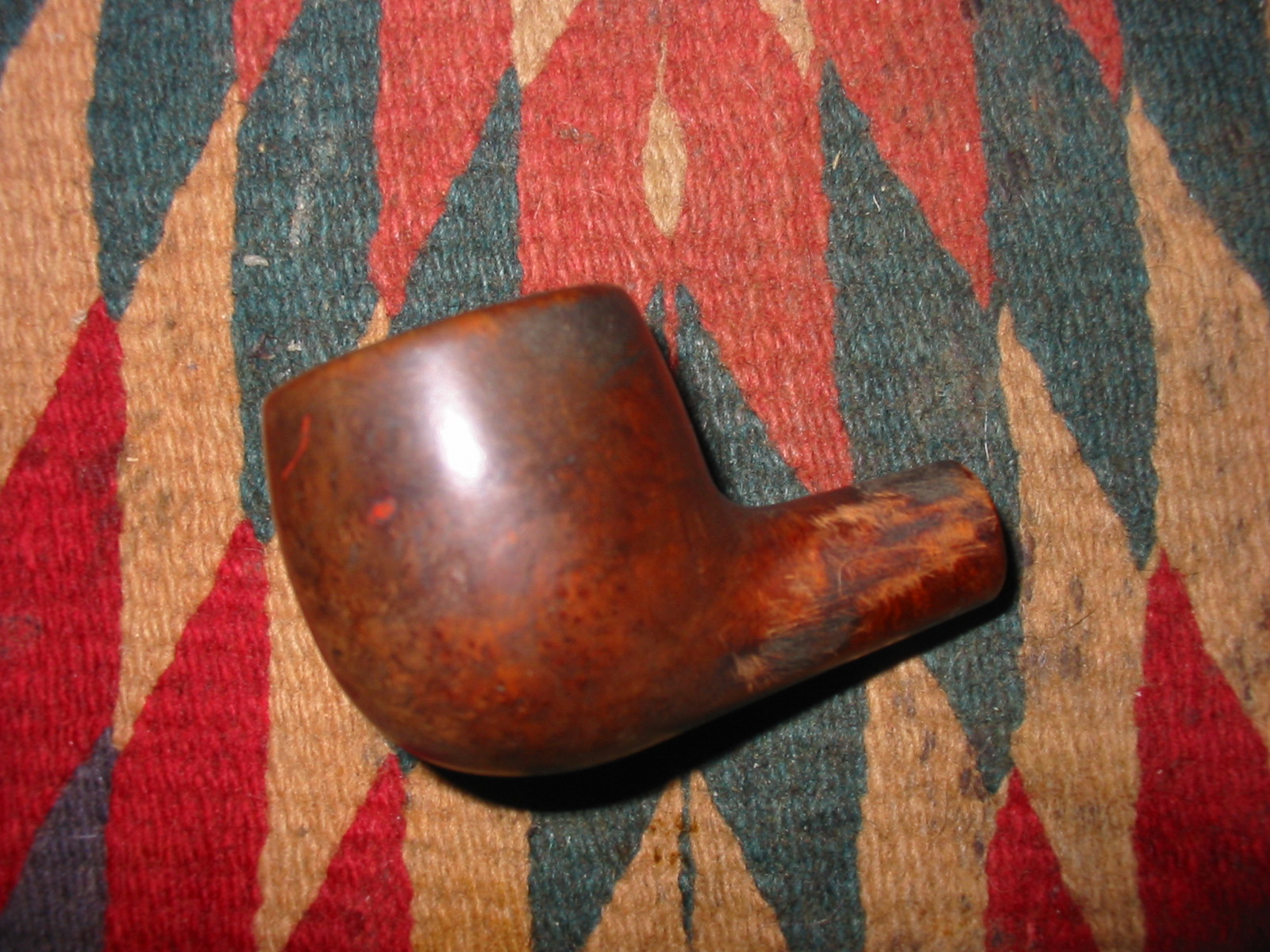 This bowl came to me with a batch of bowls needing different degrees of work. This old-timer needed cleaning as the buildup of grime and grit that was ground into the bowl was thick. The surface was coated with a greasy black substance all around the top of the bowl and the sides. The bowl/shank junction was incredibly grimy. The inner rim was out of round and the outer rim and the top of the rim were in rough shape. The outer edge had been hammered around the sides and the top had dents and cuts in the surface. The shank looked to be slightly shorter than I have come to expect on this shape of pipe; though the drilling and the mortise were original. The shank had definitely not been shortened. The bowl was caked and the buildup thickest around mid bowl. There were quite a few small pink fills around the bowl sides. There was no stamping or identifying marks on the pipe. There had been some sanding done around he shank and it had left behind some fairly deep scratches.