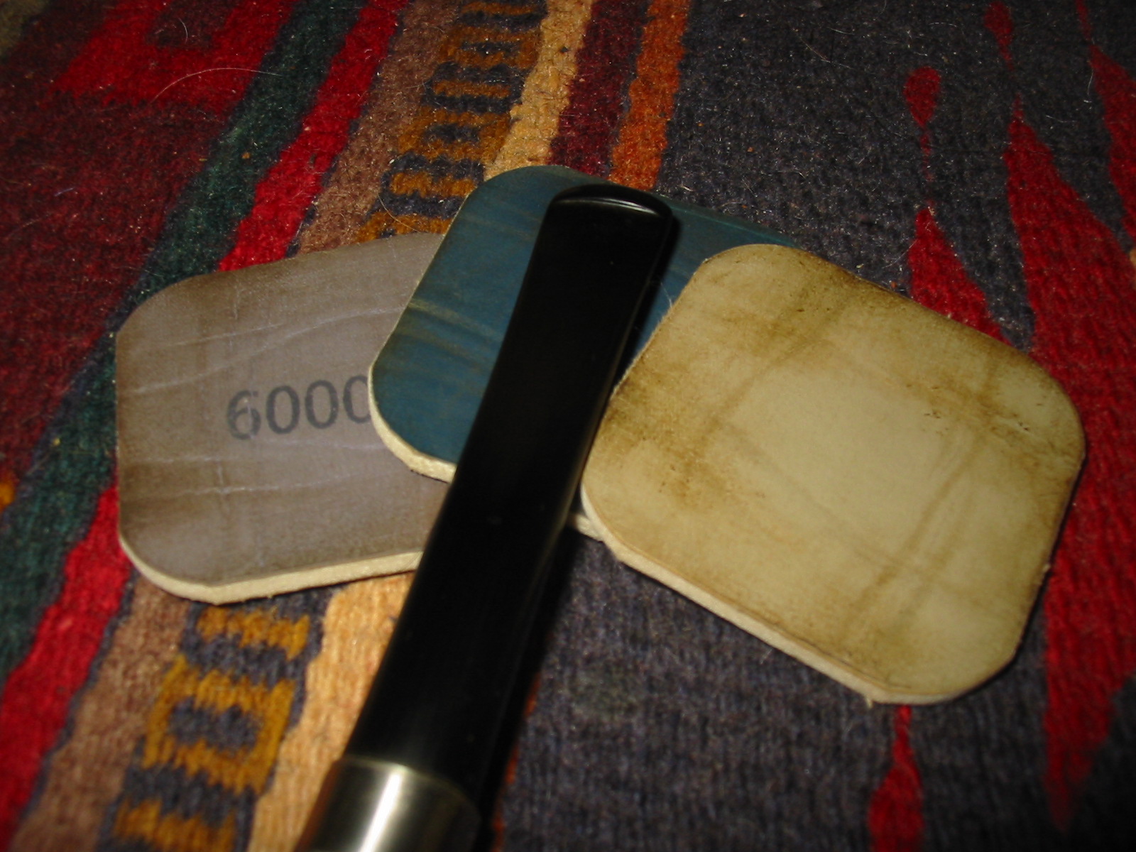 I finished the sanding with a small square of medium and fine grit sanding sponge to remove scratch marks on the bevel and get it ready for a buff. I did not intend to stain the inner rim at this point merely smooth it out.