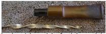 Most of my pipe friends to whom I have shown the Bewlay commented right away that it looks like a Barling. My only serious doubt arose from the little billiard’s bizarre, if I may be so bold as to describe it, tenon bit. Here indeed is a bit fashioned by an evil dentist tossed out of the profession and turned stem-maker. My friend and mentor, Chuck Richards, calls it a “funky screw,” but I prefer corkscrew or even drill bit. The thin half of the screwy bit, which bears the same Patent number found on the bottom of the shank – № 167103 – as shown above separate from the bit, fits snugly through a thin horizontal slot in the front of the tenon. The wider half slips into the mortise. Whatever this bit’s real name (and I would very much appreciate a message from anyone who knows the answer), it is removable for cleaning and perhaps replacement if necessary, which is not unimaginable given its frailty. To tell the truth, in fact, I bent mine with almost no force applied when I first discovered its presence and just had to probe to see what I could discover. Well, I soon found that the odd bit is at least like aluminum and can be removed intentionally or not, and bends with alarming ease, but then again bends right back just as handily.