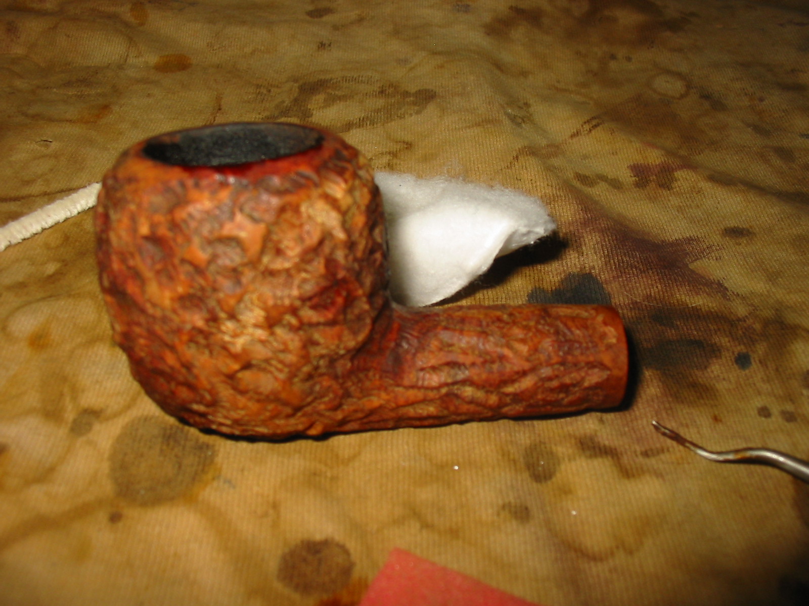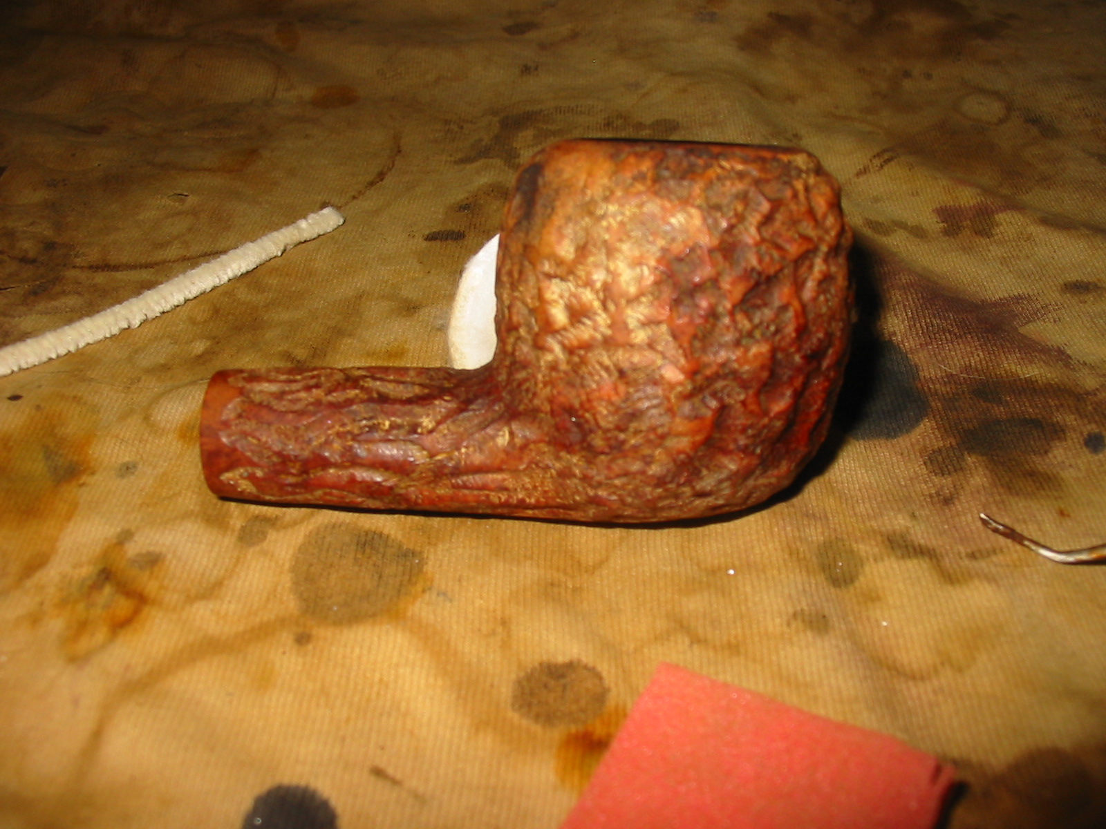 After the stain was applied I wiped it off with a rag and hand polished the bowl. The contrasting stains went a long way toward giving the pipe a great look and blending the fills into the background of the bowl.