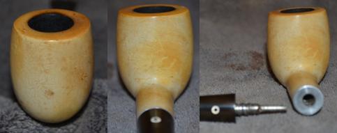Knowing that Castleford Pipe Freshener is best for cleaning Acrylic and Lucite stems, which was not an issue with this pipe, and is generally only recommended overfull alcohol with serious warnings to take care when cleaning the insides of meerschaum pipe bowls, I nevertheless saw no choice for sanitizing the shank and bowl and shank. In the end, the slight remaining chemical taste evaporated before the third bowl of tobacco I later enjoyed.