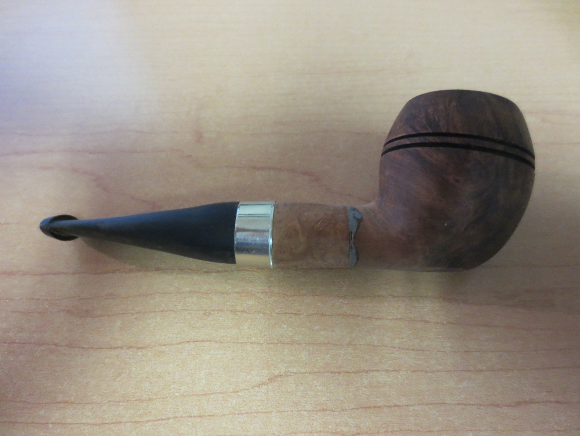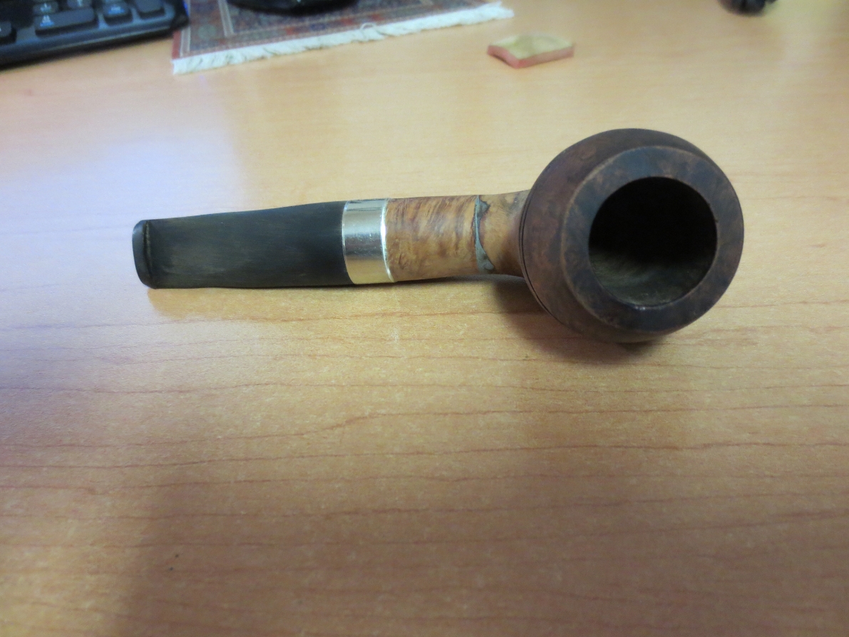 In the grab bag I got from the antique mall on my recent trip was a cutoff bulldog bowl. Whoever had owned the pipe in the past cut off the majority of the shank and had epoxied a metal tenon in place in the short shank. They had then added a churchwarden stem – a delicate round stem that really did not fit at all. In the photo below it is the bulldog just above the cob bowl. The stem was repurposed for the cob stack I wrote about in a previous blog post. The bowl just sat in the box while I figured out what I would do with it. I had thought of turning it back into a bulldog but just was not sure of that being the right direction to go with the pipe.