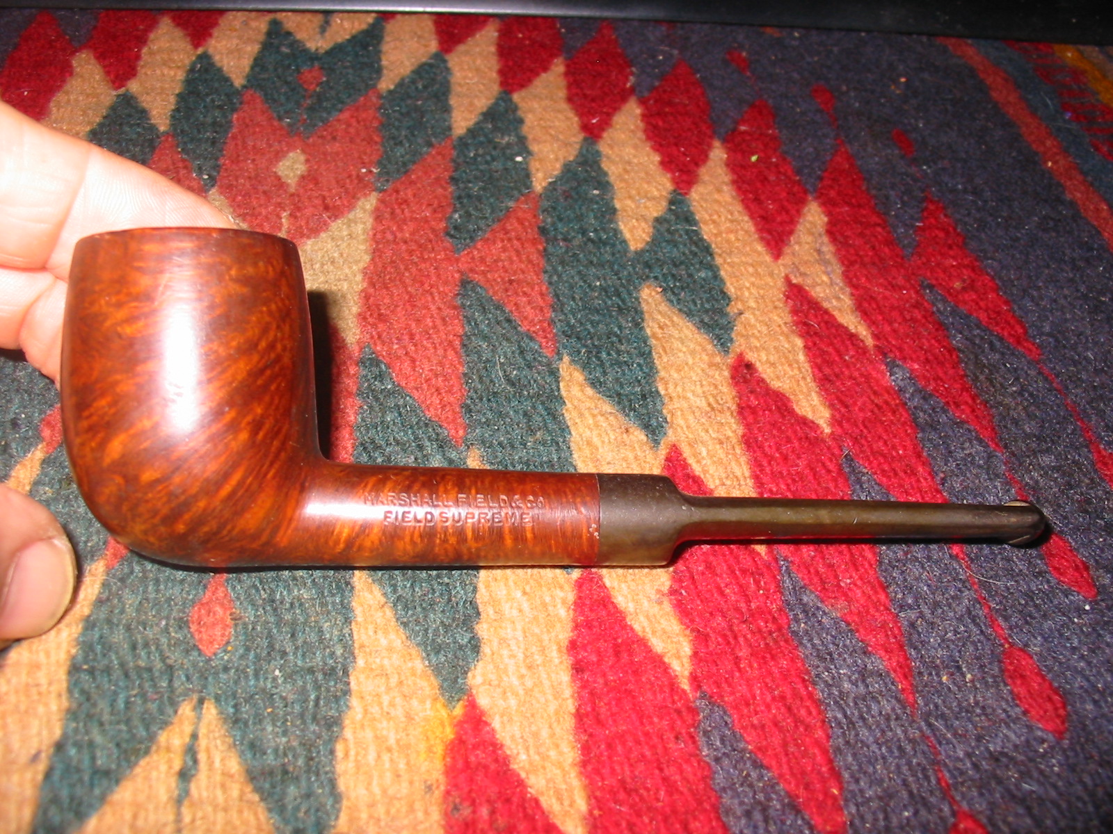 3. FIELD DELUXE (This was also seen on EBay and was a Zulu or yachtsman shaped pipe, stamped 87. The Marshal Field stamping was in a script which was different than any of the other pipes that I found. The grain was a mixed pattern.)