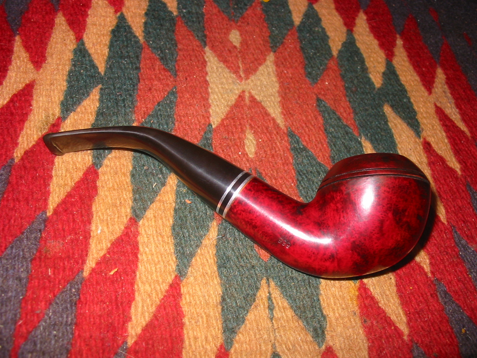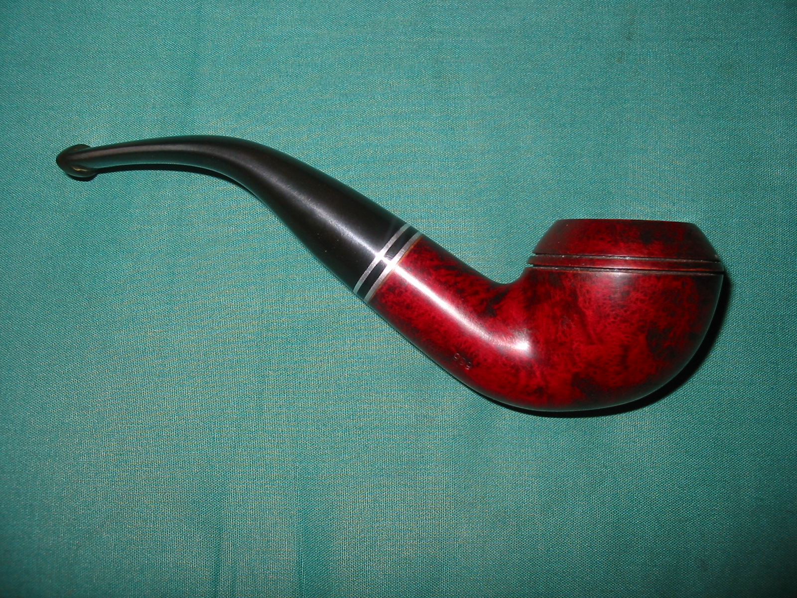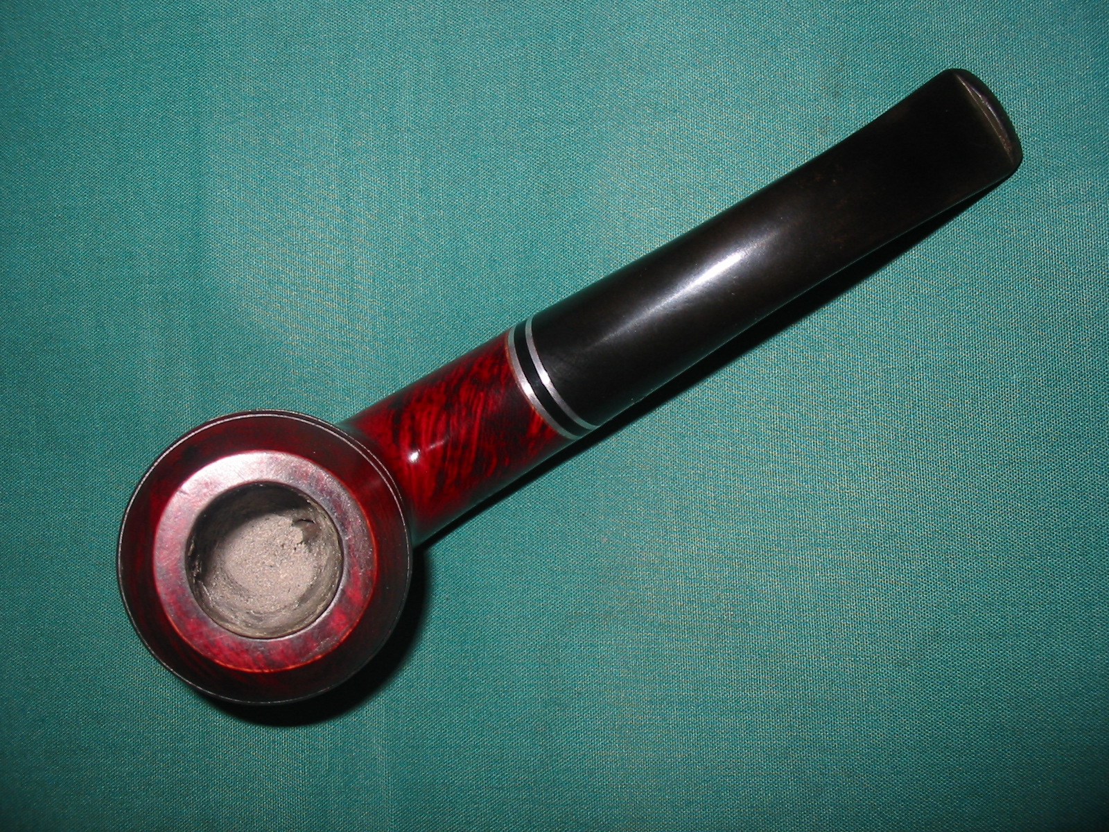 With all of the renovations complete the pipe was ready for a final buff and polish with carnauba wax. I took it to the wheel and put multiple coats of wax on it. I wanted it to shine but not have the high gloss shine that it had previously. I finished by buffing it with a soft flannel buffing pad. The new look was good in my eyes – the grain shone through nicely and the stain was more transparent than before. The contrast between the black that had been used to highlight the grain and the red topcoat was nice. The wax gave it just the right glow. Now I am hoping that when my friend fires it up that it will smoke cooler than it did before. Here are some photos of the finished pipe.