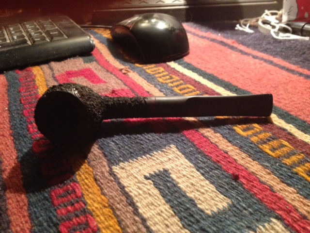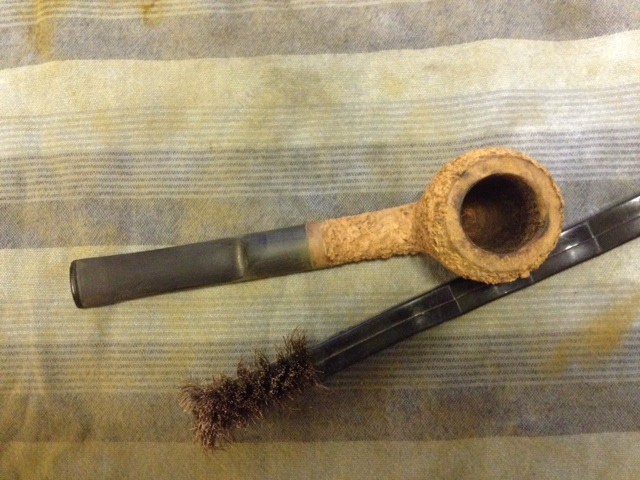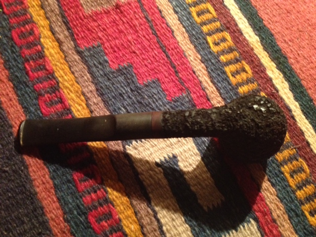 I wrote about restemming this pipe in the post on Replacing a tenon in a stem with a minimum of tools (https://rebornpipes.com/2014/06/15/replacing-a-tenon-in-a-stem-with-a-minimum-of-tools/). The thing I forgot to mention is that the bowl originally had a threaded metal stem and a metal insert in the shank. I was able to remove the insert from the shank with no trouble and craft a push stem for the shank as a replacement. The stem came out great and with some work came out looking like new. In figuring out how to finish the bowl I was faced with a few choices. The briar was not terrible, I have seen worse but there were fills in the bowl. I could have picked them out and refilled them as I have done on many occasions but somehow that just did not attract me with this bowl. I had been given a rustication tool by Chris and had not used it yet so that was very attractive to me for this bowl (https://rebornpipes.com/2014/06/07/a-handmade-rustication-tool-gifted-by-a-friend-and-reader-of-rebornpipes/). The stamping on the shank was virtually buffed away so it was not something that needed to be preserved. So the decision was made. I would get to try out the new tool and see what kind of rustication pattern it would make on the briar and how comfortable it was in the hand as I pressed and twisted it into the wood. I also wanted to see if I could use it in tight spots up against the bowl and shank and close to the stem/shank junction.