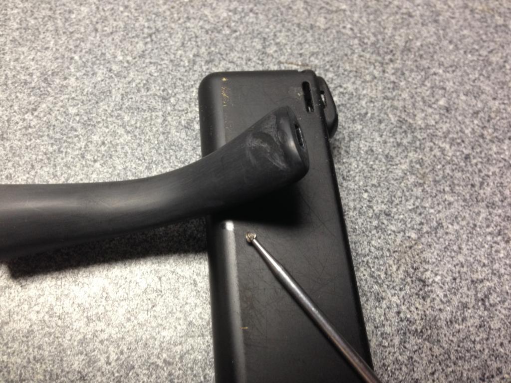 Tip #2 – Clean out the hole with a small round burr in a Dremel. Remove all oxidation and discolorations from inside the hole. “Feather” the edge which makes for better blending of the glue/stem junction and it also removes any microscopic particles of oxidation that may be hiding in the ragged edges.