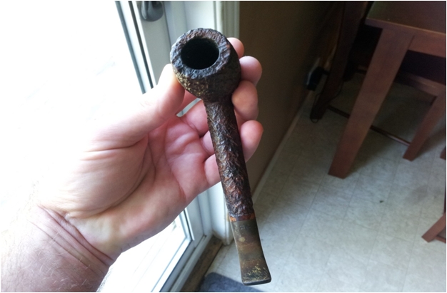 I Googled for information on how to find out about a Registered Design Number. I figured that it would be like finding out patent information. One of the first links came up was to the National Archives. http://www.nationalarchives.gov.uk/records/research-guides/reg-design-trademark.htm I read through the various pages and put in the design number. I found that the designs having number beginning with 857,000 numbers come from 1949. This number was 857,327 so it was pretty clear to me that the design was registered in 1949. At least I had found that the pipe was a made during the time the Hardcastle family owned the brand. At first I thought the design was solely for the stem but when I removed the stem I found that it was far more than that. It included an inserted metal tube deep in the shank that rested against the airway in the bowl. It extended into the shank where it was met by a metal stinger like apparatus in the tenon. This apparatus was set in the tenon. It was a ball on the end of a short tube – the difference being that it was hollow. The end of the ball that rested against the tube in the shank was open thus connecting the airway in the bowl to the airway in the stem through a metal tube that gave a cool material to wick out the moisture in the smoke before it was delivered to the wide open end of the dental bit.
