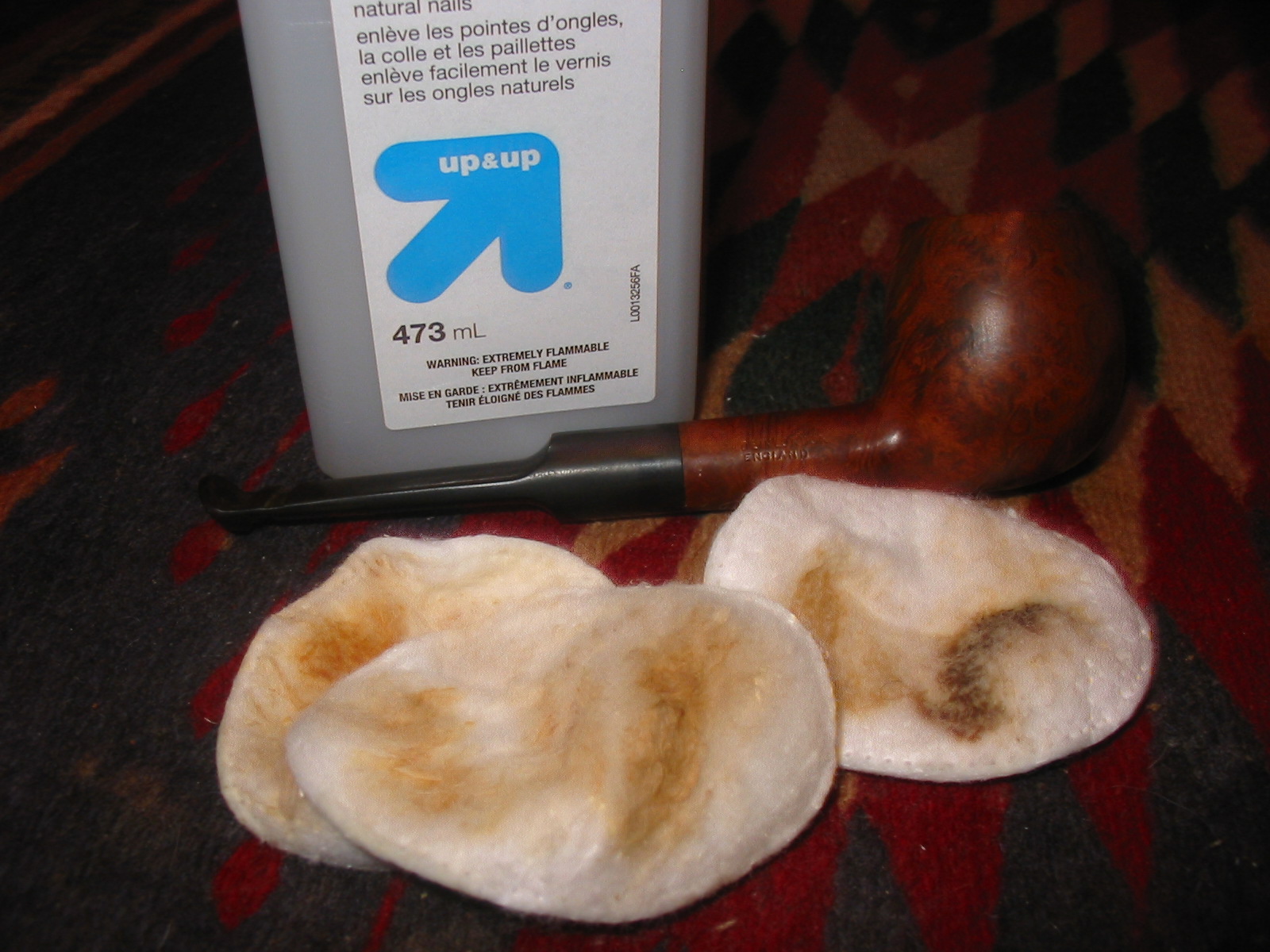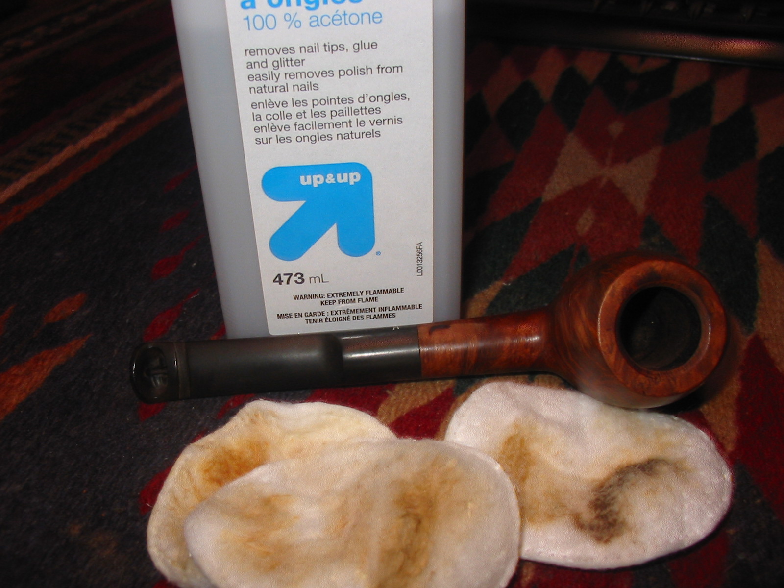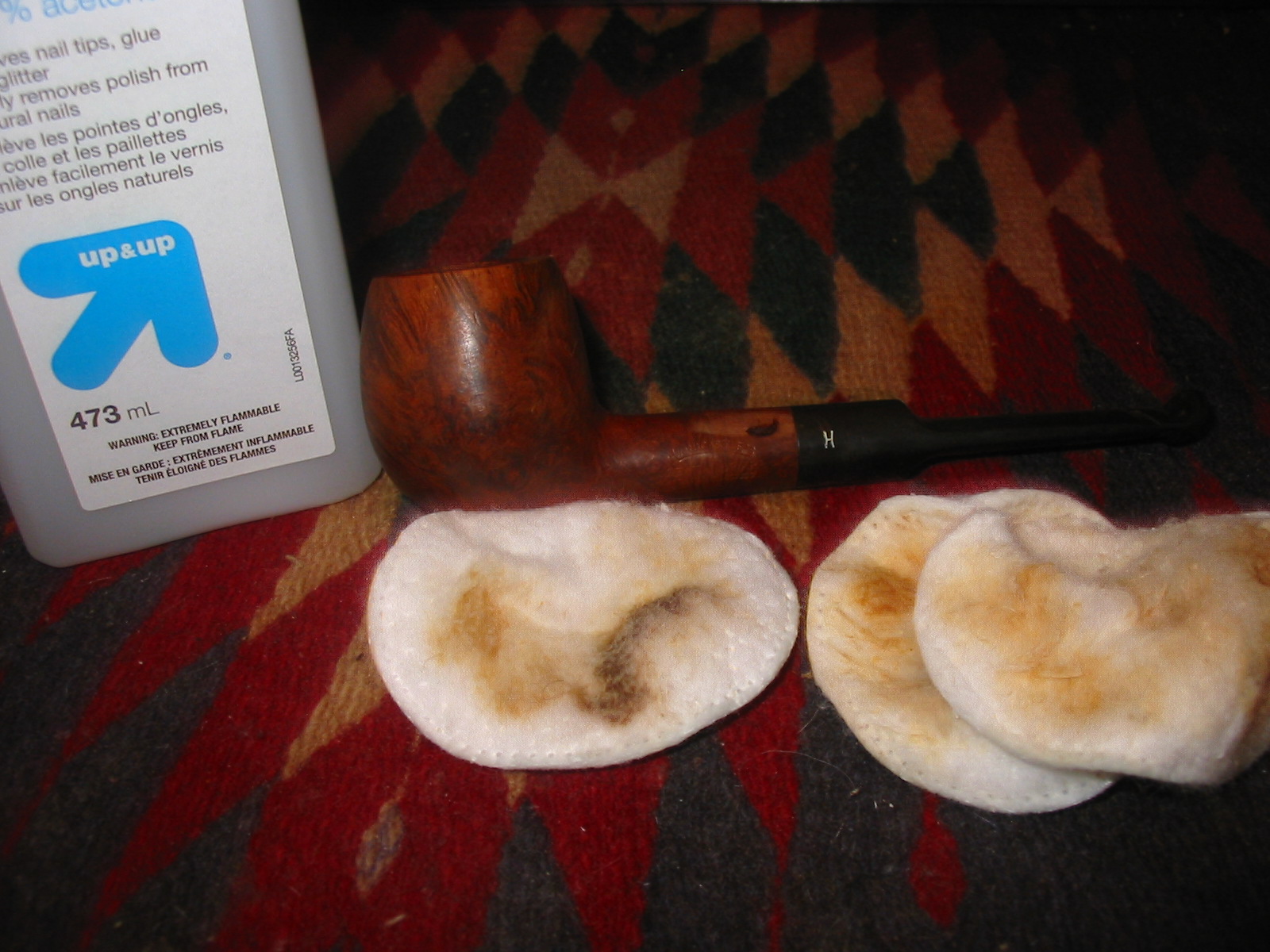 I removed the stem and cleaned out the shank and stem with pipe cleaners, cotton swabs and isopropyl alcohol. I scrubbed until they came out clean and unblemished. Then I reamed the bowl and wiped down the inside of the bowl with cotton swabs and alcohol and ran several more pipe cleaners through the shank to remove any carbon dust.