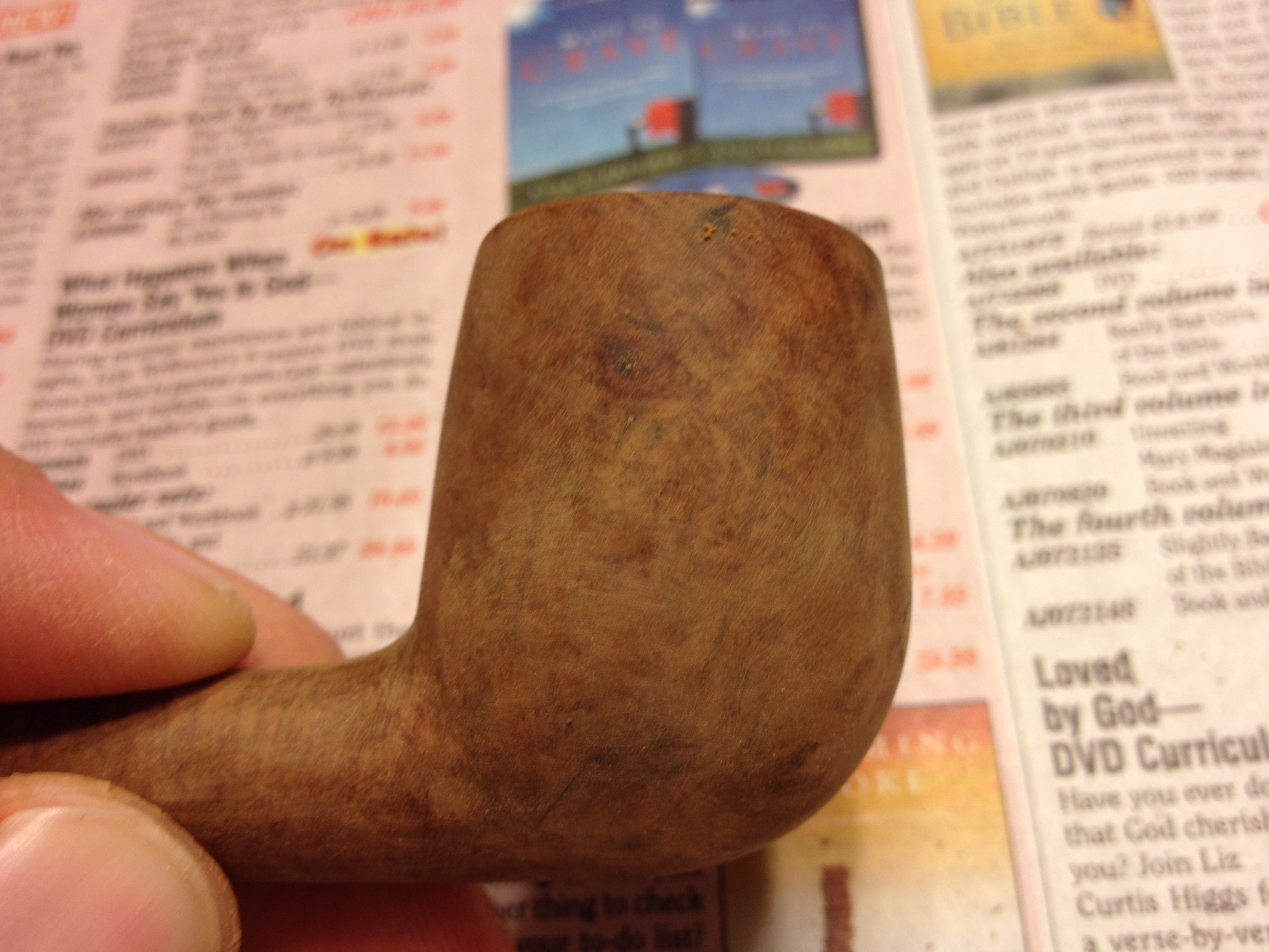 The finished pipe is shown in the last series of photos below. I am happy with how this old timer turned out. I am so glad I did my research before cutting off the stem and recutting a new button or splicing in a new button. I would have ruined a unique piece of pipe history and lost the opportunity to learn yet another piece of the history of our fascinating hobby. Now instead it is a restored piece that shows the creativity of those seeking to create a more comfortable pipe. Now I have to load a bowl and give it a try.