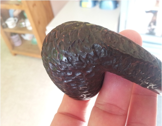 I want to show that with a little time, lots of patience and a steady hand, waxing any pipe especially a rusticated pipe is possible with a Dremel. This method may not be for everyone and please don’t try this for the first time on a good pipe. The first time I did this I melted an indent in a pipe stem. Practice, steadiness and constantly moving are the key. Do not worry about a build-up of wax because the step with the fibre brush will take care of that. Pictures are hard to show sometimes but hopefully you can see the difference from before to end. I am using a Brigham 103 Italy that I bought from Greg Wolford a little while back.