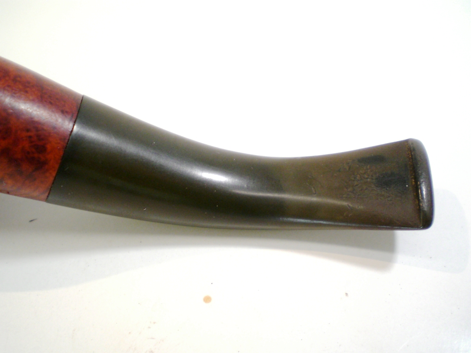 As can be seen from the photos above the diameter of the stem was bigger than that of the shank. I used the sanding drum on the Dremel to take it down as close as possible to the shank diameter without damaging the shank. Once I had it close I did the rest of the work with 150 grit sandpaper and followed that with 220 grit sandpaper. When the transition between the two was smooth to touch I used a medium and a fine grit sanding sponge to remove the scratch marks from the stem. Since I was planning on restaining the pipe I sanded the shank gently to make sure that the transition would be smooth and the flow correct. I have found that this is the only way to keep the stem and shank matching without and shift in height on either material.