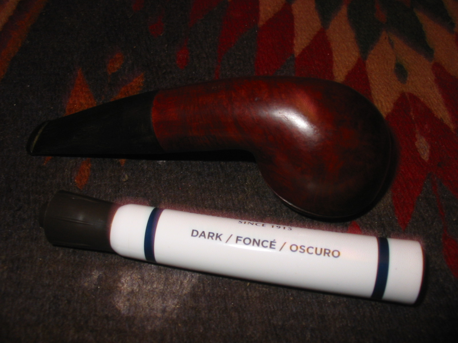 For comparison sake, I have included a photo of the newly reworked KAPMEER with the earlier KILDARE that I restemmed from a piece of Cumberland rodstock that I purchased from Todd Bannard of Briar, Sweat and Tears Pipes http://www.briarsweatandtears.com/ . Todd cut the length and did the drilling and shaping on that piece before sending it to me to finish. As you can see both have the thicker old style shanks that are no longer used on Peterson 999 pipes. This pipe is the third one that I have from that earlier time period. It is the shape of the 999s that I favour.