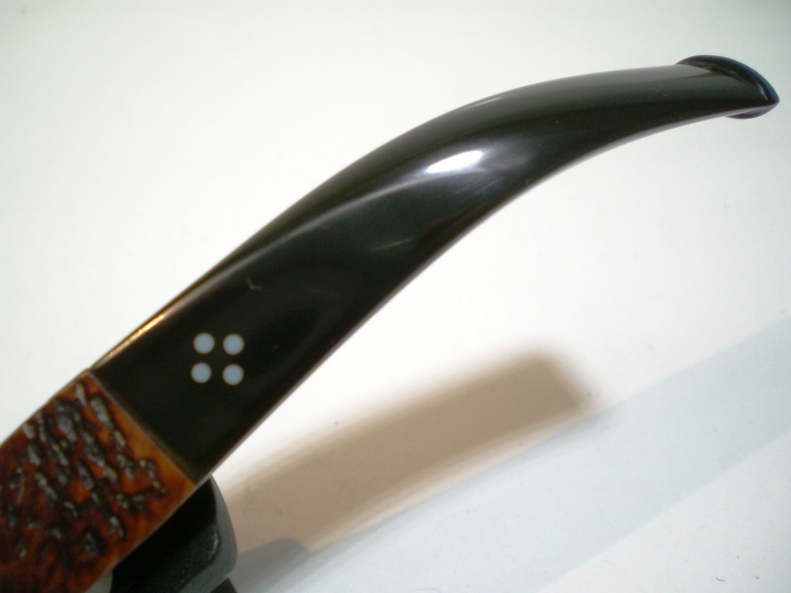 The third pipe was a small Canadian with many fills in the shank and bowl. I did a shallow rustication with the pipe and nails and then used a dark brown and medium brown stain to get the look. All three of the first pipes have a leatherlike finish to them that was achieved by sanding or buffing the highspots on the finish after rusticating.