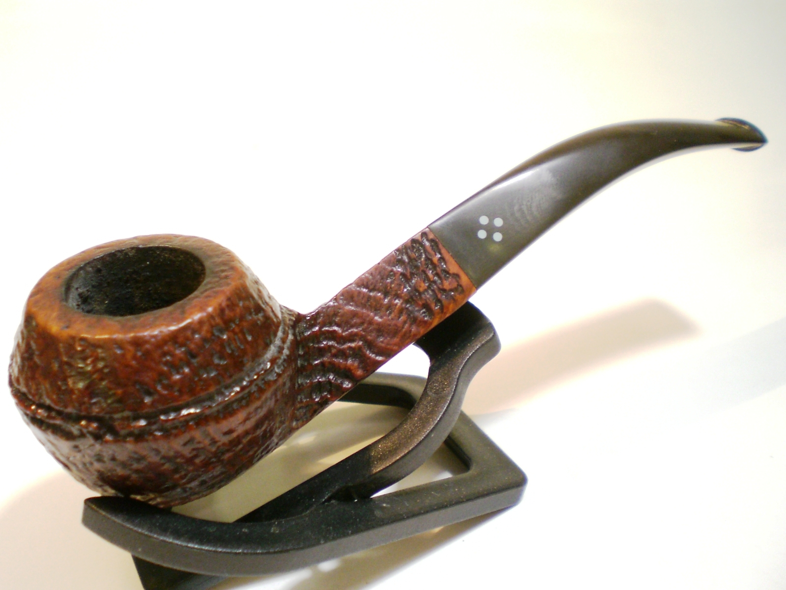 The fourth pipe pictured below was one of my creations, my first Frankenpipe composed of three different pipes. I used a Philips screwdriver that I made into a rustication tool to achieve the rustication pattern on the shank. I left areas in the pattern that were smooth. I stained the gouges with a black stain and the rest of the pipe with a medium brown stain. I wire brushed the rustication and then buffed it with Tripoli.