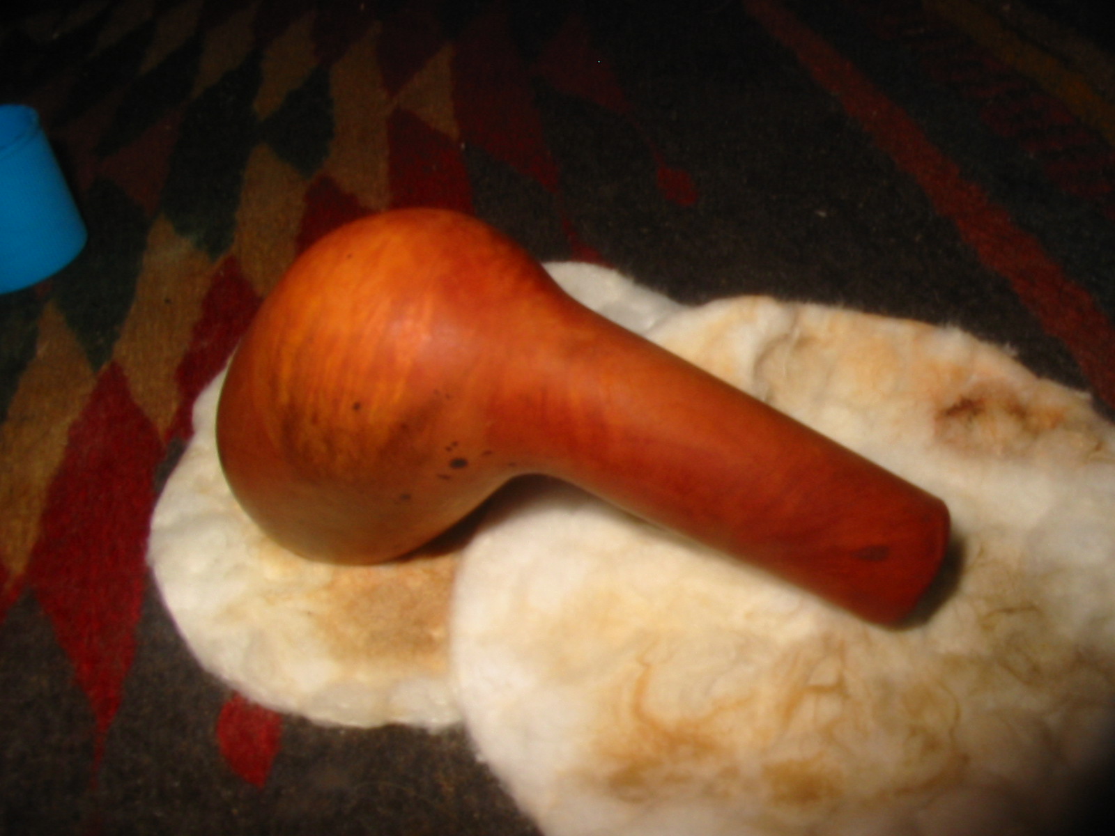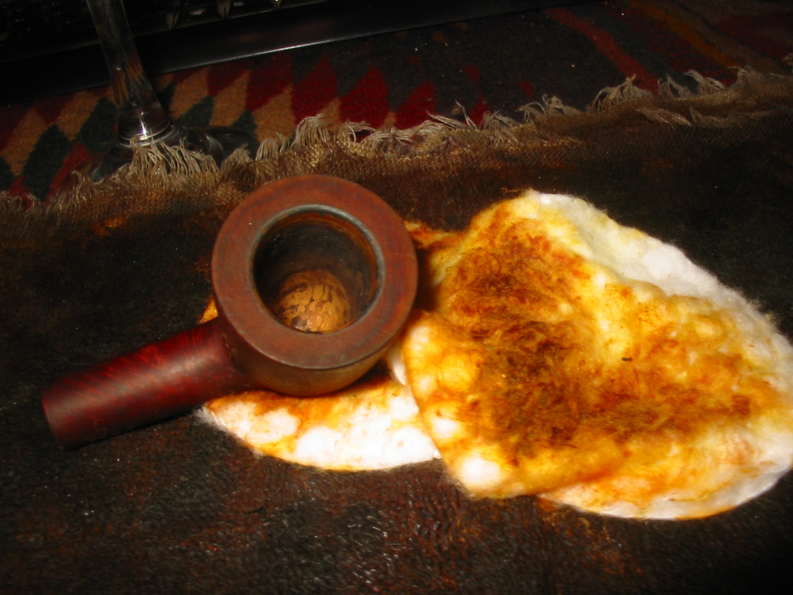 I wiped down the bowl with acetone on cotton pads to remove the finish and as much of the dark staining on the side of the bowl as possible. The dark spots were deep in the finish of briar so I was not sure I would be able to remove them.