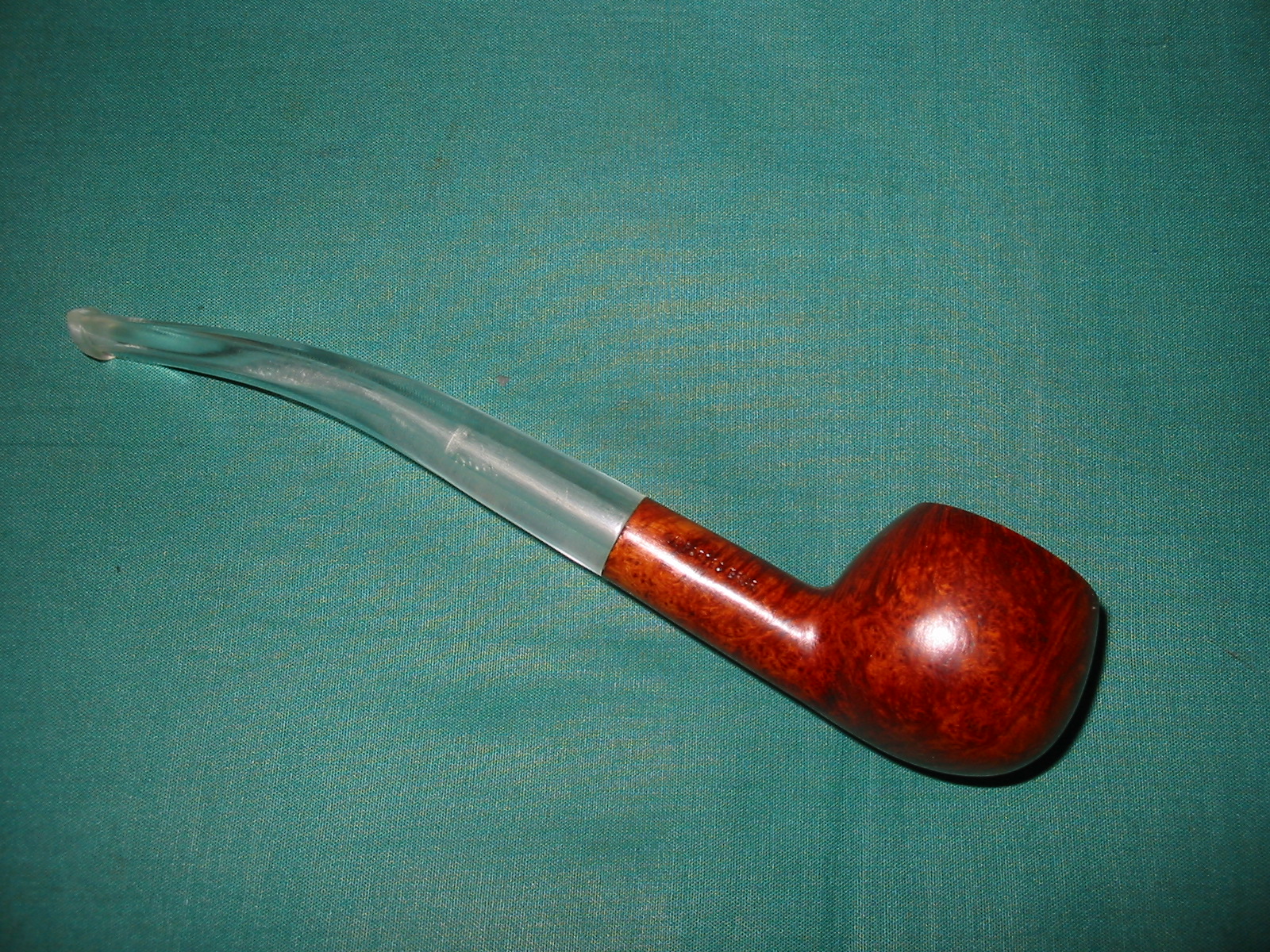 The second Television Pipe I received was a prince shape bowl without a stem. From the previous post I found out that it was an English Brand with a long stem. The brand was sold by A. Grunfield Co. and was produced by Gasparini. That bit of information came from Jose Manuel Lopes – Pipes Artisans and Trademarks. The bowl had a thick coat of varnish and a large fill on the front of the bowl. It appeared to be a deep fill and went from the top edge of the rim down about a third of the bowl. It did not go all the way through the briar to the bowl itself. There was also a smaller fill on the bottom of the bowl near the shank bowl junction. The grain was very mixed. On the back side and on the left and right sides there was some nice straight grain. The front of the bowl looked bald with the fill in the middle. The rim had a tarry buildup and was rough. The bowl had an uneven cake on the inside. Since there was no stem with the pipe and I did not have any church warden stems on hand I had some choices to make on the stem. I had a vulcanite stem and a clear Lucite stem that had potential. They were both longer than a typical prince stem but still not a church warden style.