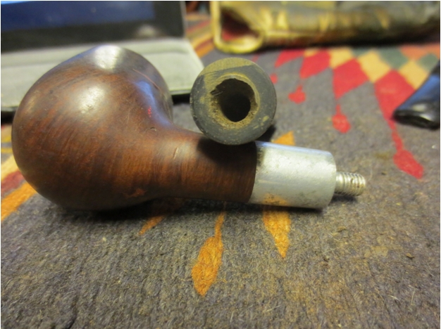 I buffed whole pipe with White Diamond and gave it several coats of carnauba wax to raise a shine. I wanted to protect and shine the bowl and stem. The finished pipe is shown in the photos below. The new stem with the retrofitted metal tenon fit extremely well. I like the overall look of the pipe far better than the original look with the saddle stem. The pipe is ready to give many more years of service to the next pipeman whose rack it graces. The end of the stinger is removable so that the pipe can be smoked with or without the stinger.