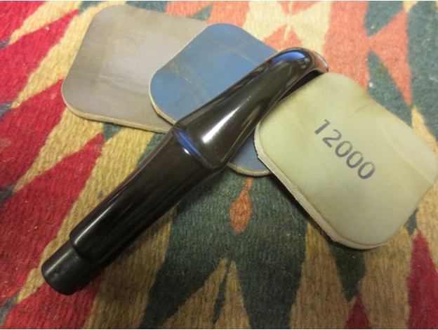 While the bowl sat soaking I worked on the stem to remove the oxidation. I sanded it with micromesh sanding pads – wet sanding with 1500-2400 grit pads and dry sanding with 3200-12,000 grit pads. I wiped it down with Obsidian Oil between each set of three pads.