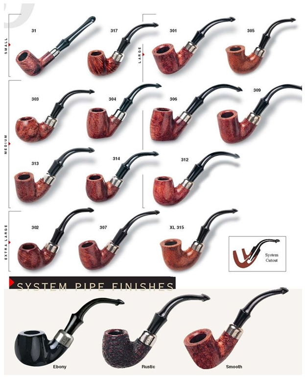I also found this shape chart of Peterson System pipes on Pinterest and included the link to it here: http://www.pinterest.com/pin/464996730250913354/ I was particularly interested in noting the size variation between the 312 and the 314. While the shapes are very similar the 314 is significantly smaller than the 312.