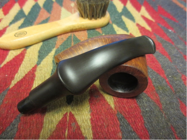 This past weekend my son in law came over with the Peterson Dunmore pipe that he had purchased on a recent pipe hunt in the US. He picked it up for $15USD so it was a good purchase. We finally got around to working on it. In a previous post on the Dunmore line I had found that the line from Peterson really is a stripped down pipe. The one that we worked on this weekend was in essence a system pipe. The lack of a ferrule is made up for by a stylized carving around the shank end. The stem sits snugly against the end of the shank but is not flush with the diameter of the shank. The saddle on the stem has a slightly different flair than a regular Peterson pipe. It had a Plip stem. It bore the stamping Peterson’s over “Dunmore” on the left side of the shank and Made in the Republic of Ireland and the number 79 on the right side of the shank.