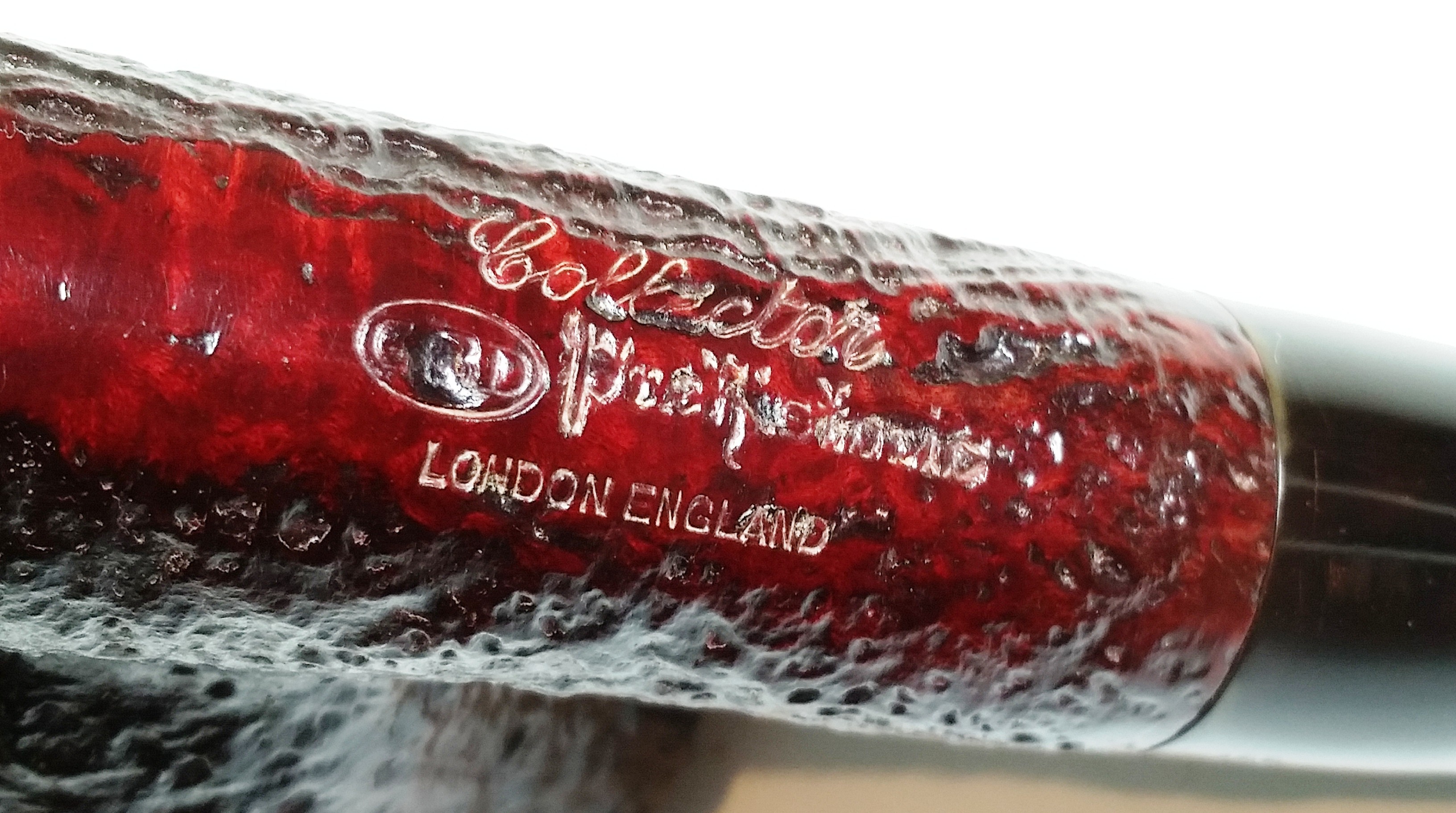 Examining the stem, it appeared to be of a very high quality and definitely far better finished than any GBD stem I had ever seen. So, as I turned it over, I wasn’t surprised to see the elusive “Hand Cut” stamp. I have one GBD with this stamp and while it is an excellent stem it is not quite as well finished as this one. The stepped tenon is very nicely funneled and the button end is as good as any artisan pipe I’ve handled or owned.