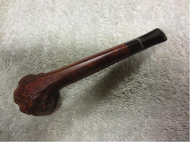 I found this pipe on a recent pipe hunt in the US. It was sitting in a locked cabinet in an antique mall just waiting to be found. It has a long round shank with a saddle stem so it fits the description of a Lovat. It is a large pipe however – approximately 6 inches long. The combination of rustication and smooth is attractive. It has the standard Custombilt rustication but for some reason on this old pipe it looks more refined and less clunky (good scientific term, LOL!) than the other Custombilts and CustomBilts that have passed through my hands.