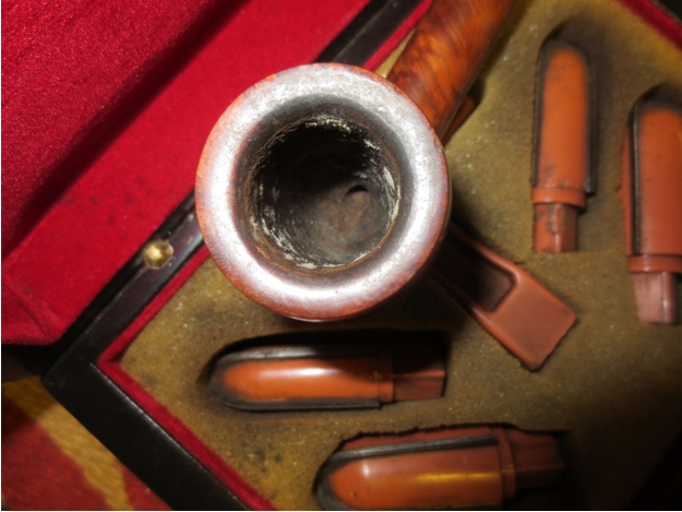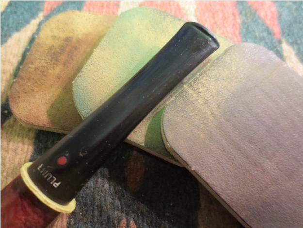 I got this on eBay recently and was dubious of the buy but got it cheap enough. It has a stem with the letters BC in a plastic / lexan insert in it. In looking up the BC it resembles the Butz – Choquin style. The fit is good and it has a 9mm filter inside. The nomenclature on the pipe is in good shape and says Peterson XL90s on the right and Shamrock filter on the left. The stem had a very rough texture to it, like it had been sand blasted. It wasn’t scratched as in sanding, just raised material that was very dull in color.