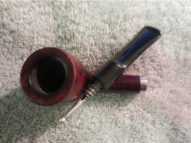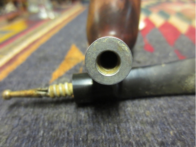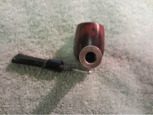 The shank was very dirty and the aluminum on the tenon, stinger and end of the mortise insert was oxidized. I scrubbed those with 0000 steel wool and then put the pipe back together in order to use the retort on it.