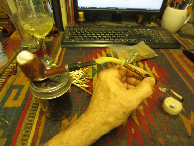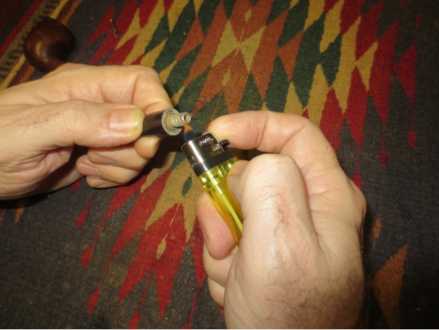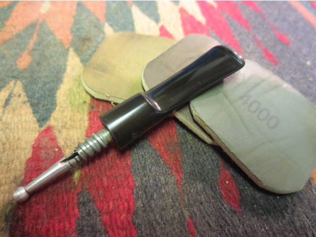 With the stinger removed I heated the tenon with a lighter to soften the glue and correct the over turned stem. It did not take long to heat it enough to screw it into the shank and turn the stem on the tenon until it lined up correctly.