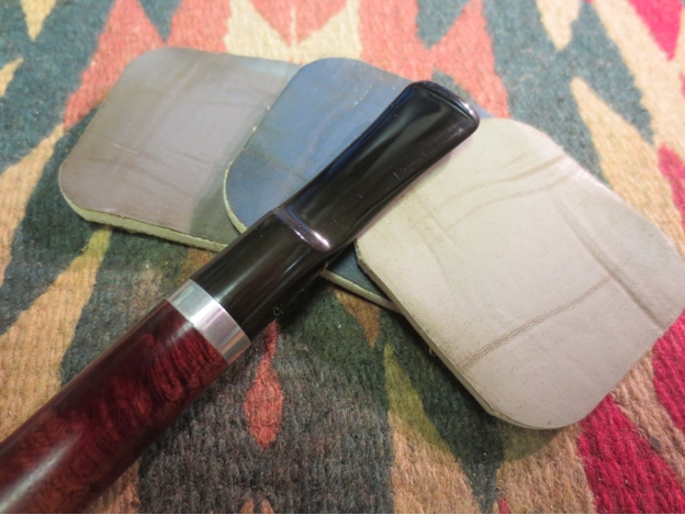 I set the bowl aside to dry for a while and worked on the stem. I sanded the tooth chatter and oxidation with a medium and fine grit sanding sponge. They were hard to remove so I used a folded piece of 220 grit sandpaper to work on the tooth chatter and tooth mark on the underside of the stem. I had to use a small drop of clear super glue to fill the tooth mark. Once it dried I sanded it smooth with 220 grit sandpaper and then began the work of polishing the stem with micromesh sanding pads. I wet sanded with 1500-2400 grit pads and dry sanded with 3200-12,000 grit pads. I rubbed it down between each set of three pads with Obsidian Oil before sanding with the next set of three pads.
