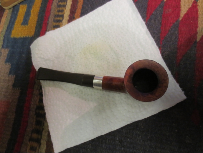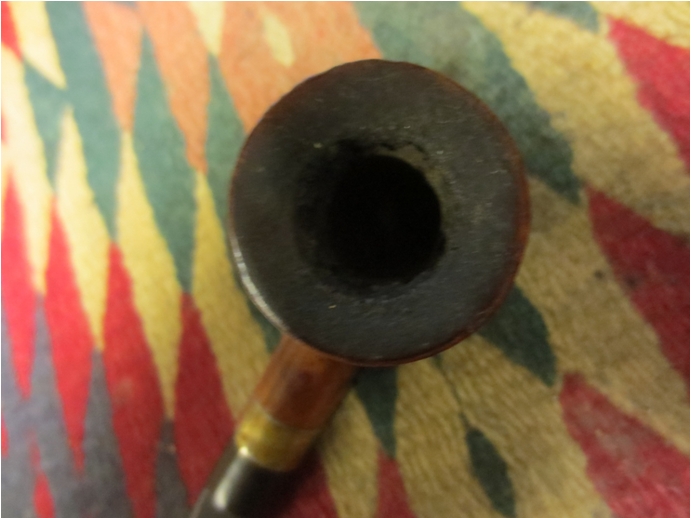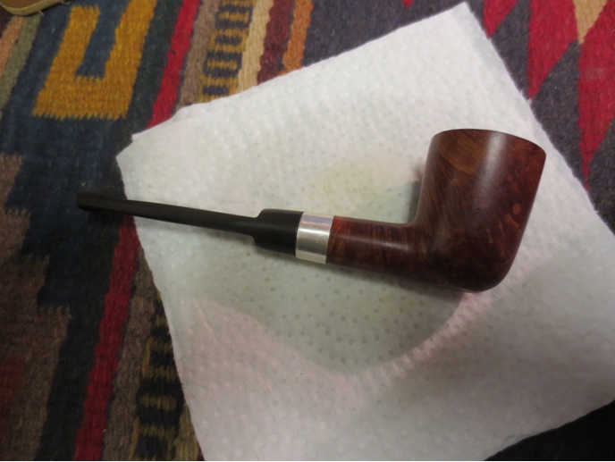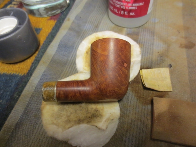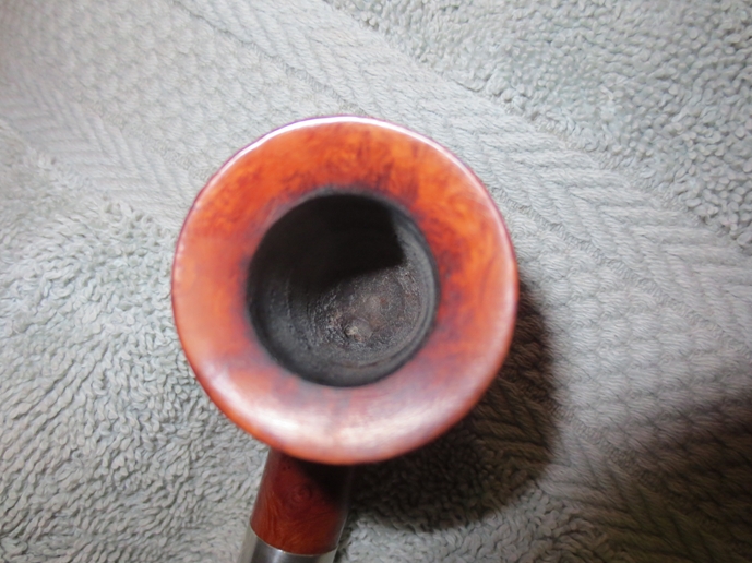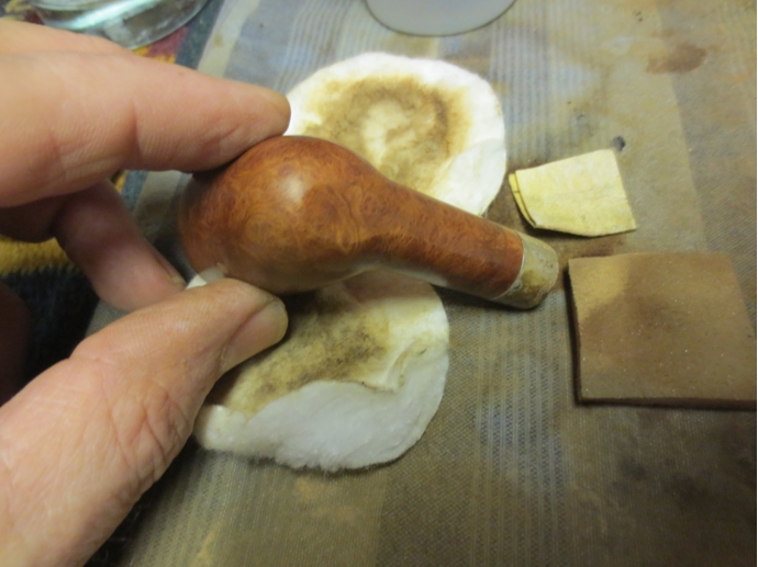 I let the oil sit over night and in the morning while I had a cup of coffee I sat and rubbed down the bowl by turning it over in my hand. I finished the coffee and then took a picture of the pipe where it stood after the rub down. You can see the chamfer on and the nice birdseye that is on the surface of the rim.