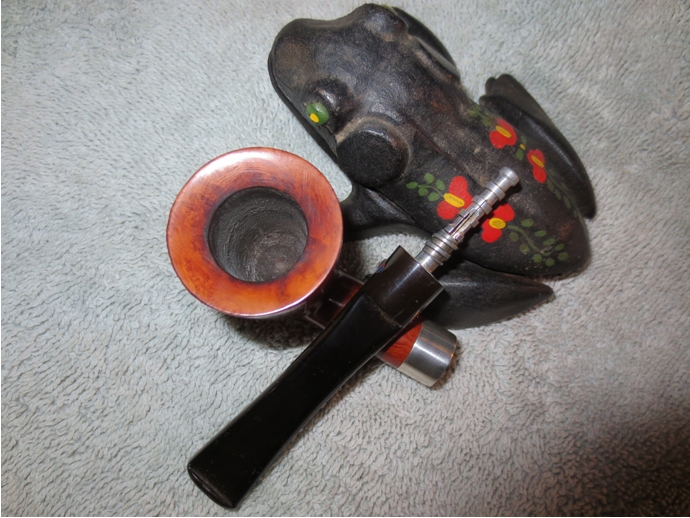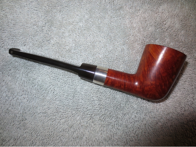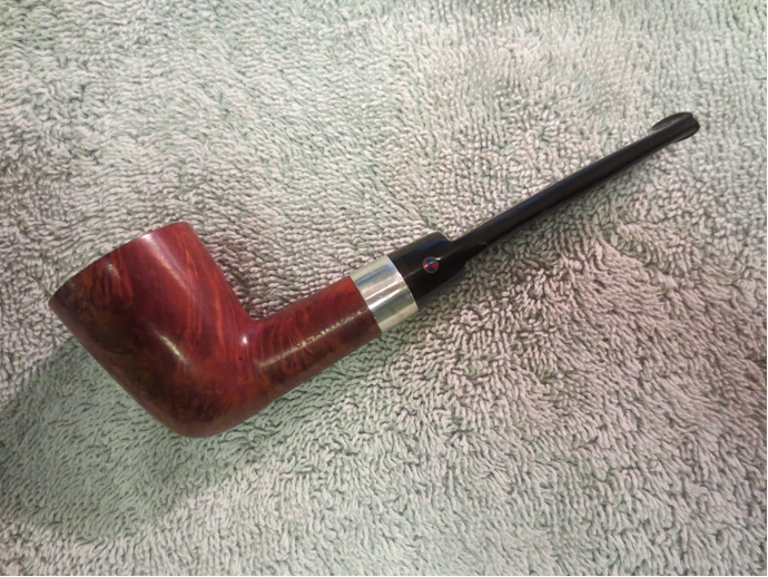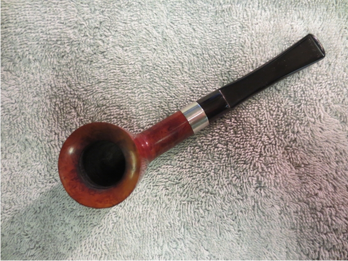 I buffed the stem and bowl with Blue Diamond polish on the buffing wheel and then hand buffed it with a soft flannel cloth. The final buff with the Blue Diamond removed many of the light scratches in the briar. I gave the stem and bowl multiple coats of carnauba wax and a final buff with a soft flannel buffing pad to raise the shine. The finished pipe is shown below.