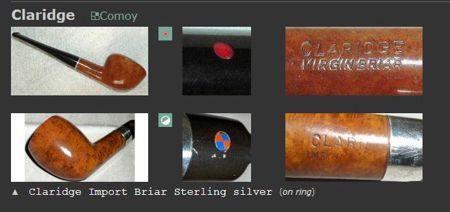 In the back of my mind I remembered something about the Claridge brand be made by Comoy’s as a seconds line. It was only a dim memory so I looked it up on Pipephil’s site and on Pipedia and found that indeed it was one of many sub-brands of Comoy’s. The picture below shows the logo and stamping on the Claridge. It came from the PipePhil site. My pipe is stamped like the second one in the photo – Claridge over Imported Briar and bears the same stem logo.
