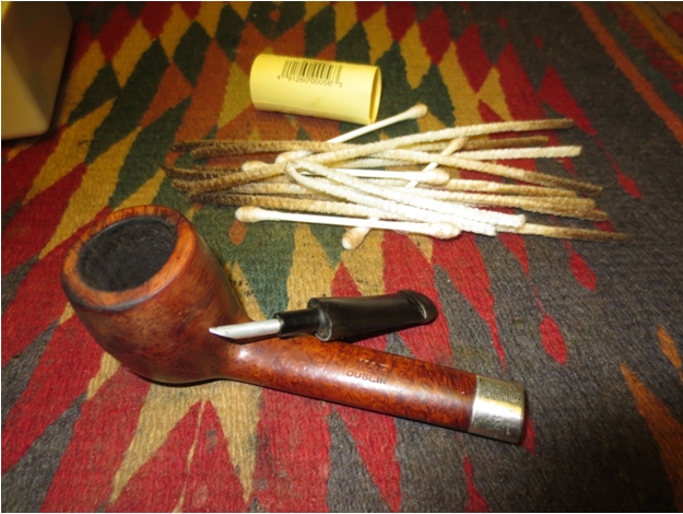 I scrubbed out the shank and the stem with pipe cleaners, cotton swabs and isopropyl alcohol until it was clean. The pipe even smelled fresh!