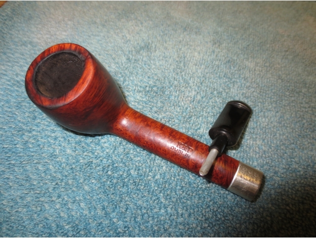 “Mark, the Peterson that I need information on is a Canadian shape with a silver band. It has the p-lip stem in quite remarkable shape under the oxidation. The stamping on the pipe is interesting. On the top of the shank it is stamped K&P over DUBLIN and on the underside of the shank it is stamped Made in Ireland in a circle with the “in” in the centre of the circle. The silver band was black with oxidation but after a light cleaning I can see that it is stamped STERLING SILVER horizontally to the shank. Over that are the K & P in three shields. Underneath there are hallmarks stamped vertically to the shank. It looks to be the typical stamping. The first two shields are worn but seem to have the Ireland figure, the 925 silver stamp and a third that looks to be a P. Any information would help. Thanks Mark.”