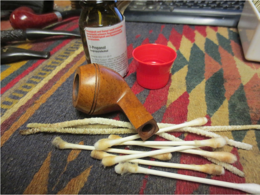 I set the bowl aside to dry and worked on the stem. I had dried it off when I removed it and the tube from the Oxyclean bath but still needed to do some work to clean out the airways. I used pipe cleaners, cotton swabs and isopropyl alcohol to clean out the stem airways.