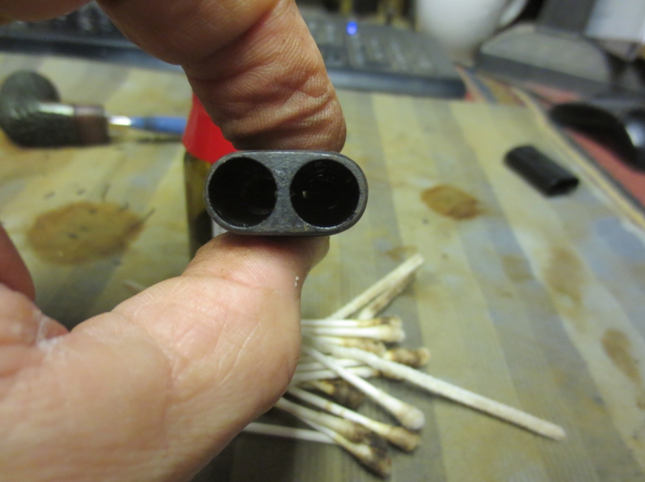 I removed the stem from the shank and took the following photo. It was a twin bore stem that moved toward a single airway in the thinner portion. It formed a Y. The twin bores were quite large as can be seen in the photo. It made me wonder what I was dealing with.